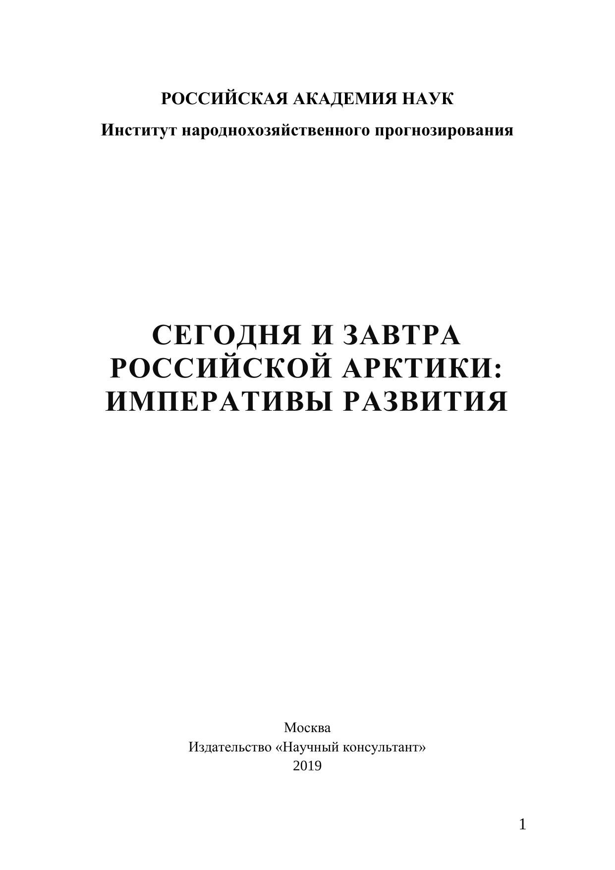 Сегодня и завтра российской Арктики императивы развития и новые механизмы