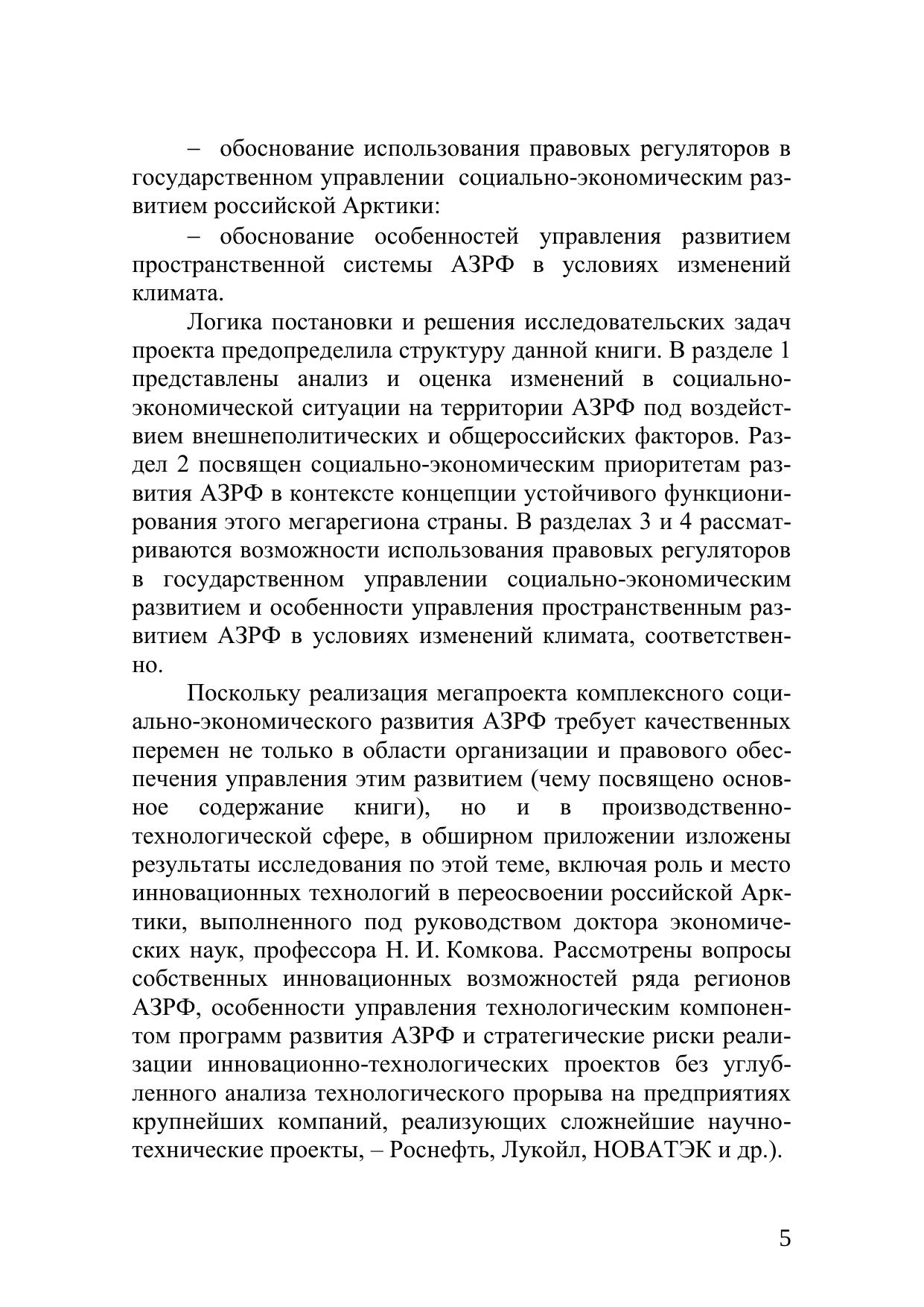 Предлагаемая монография посвящена исследованию текущих условий и перспектив комплексного развития российской Арктики в контексте задач государственного управления переосвоением территорий Арктической зоны Российской Федерации (АЗРФ). Дана системная оценка социально-экономической ситуации в АЗРФ с учетом влияния внешнеполитических и общероссийских факторов. Проанализированы социально-экономические приоритеты развития АЗРФ, основанные на концепции ее устойчивого функционирования. Исследованы возможности и проблемы использования правовых регуляторов в государственном и муниципальном управлении социально-экономическим развитием российской Арктики. Рассмотрены особенности управления развитием российской Арктики в условиях изменений климата. Дана характеристика роли и места инновационных технологий в переосвоении российской Арктики.