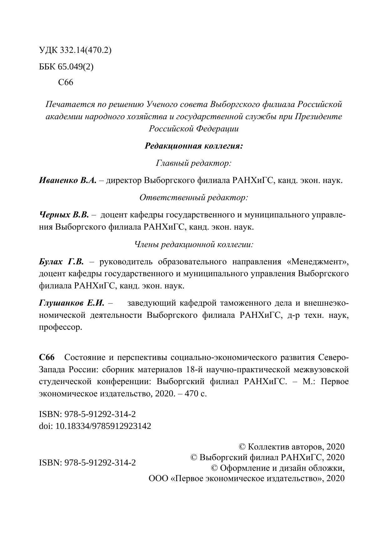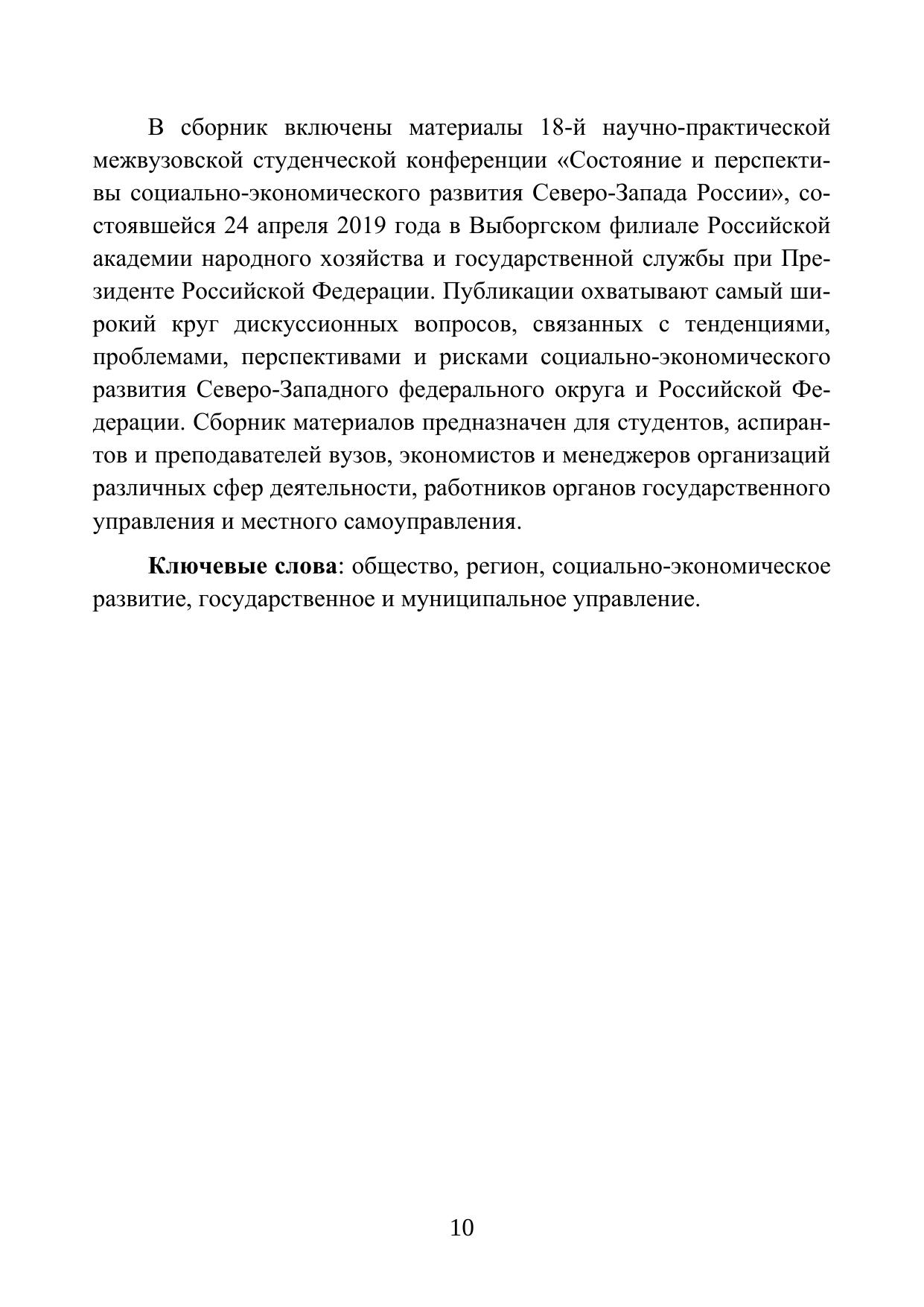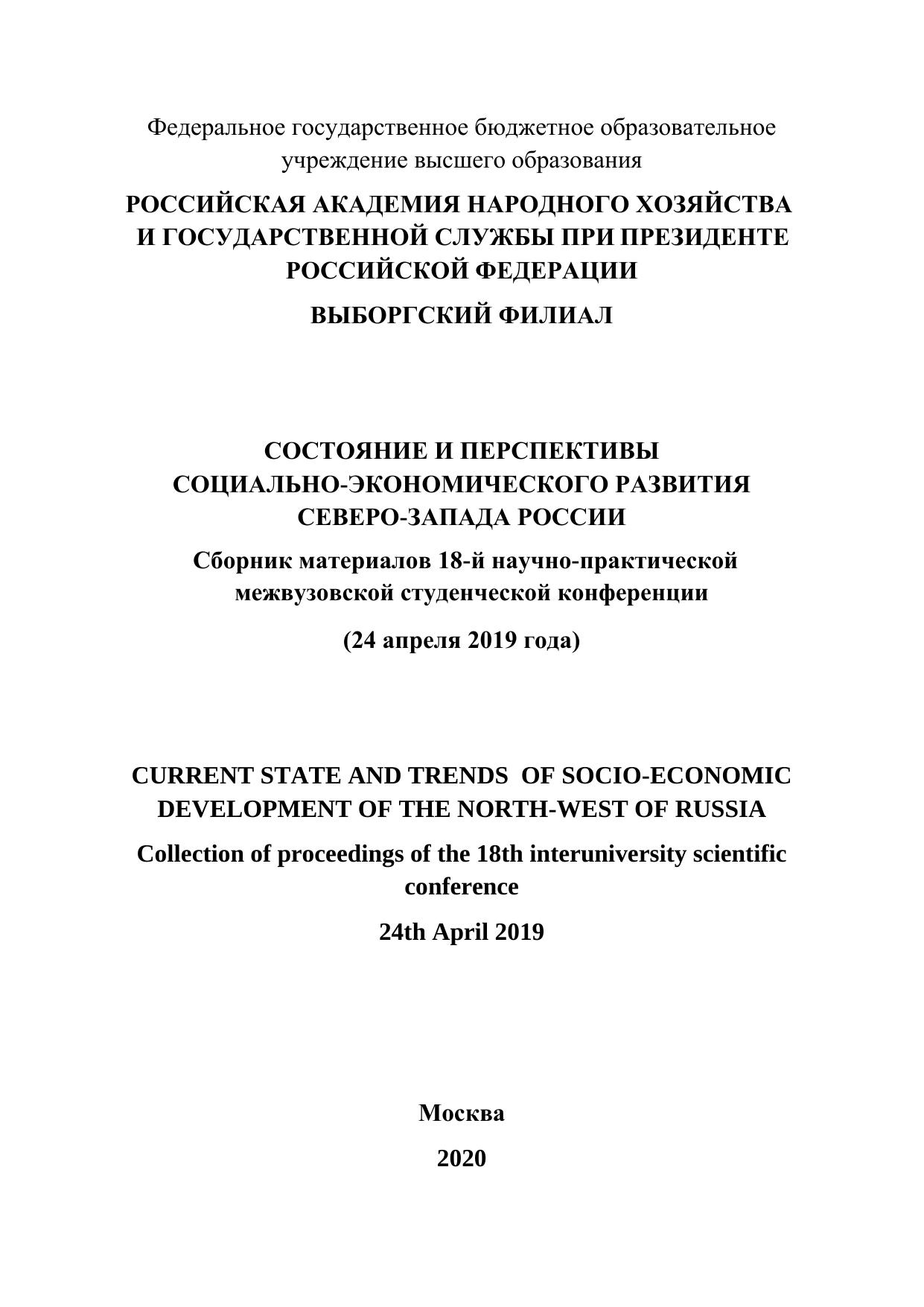 Состояние и перспективы социально-экономического развития Северо-Запада России: сборник материалов 18-й научно-практической межвузовской студенческой конференции