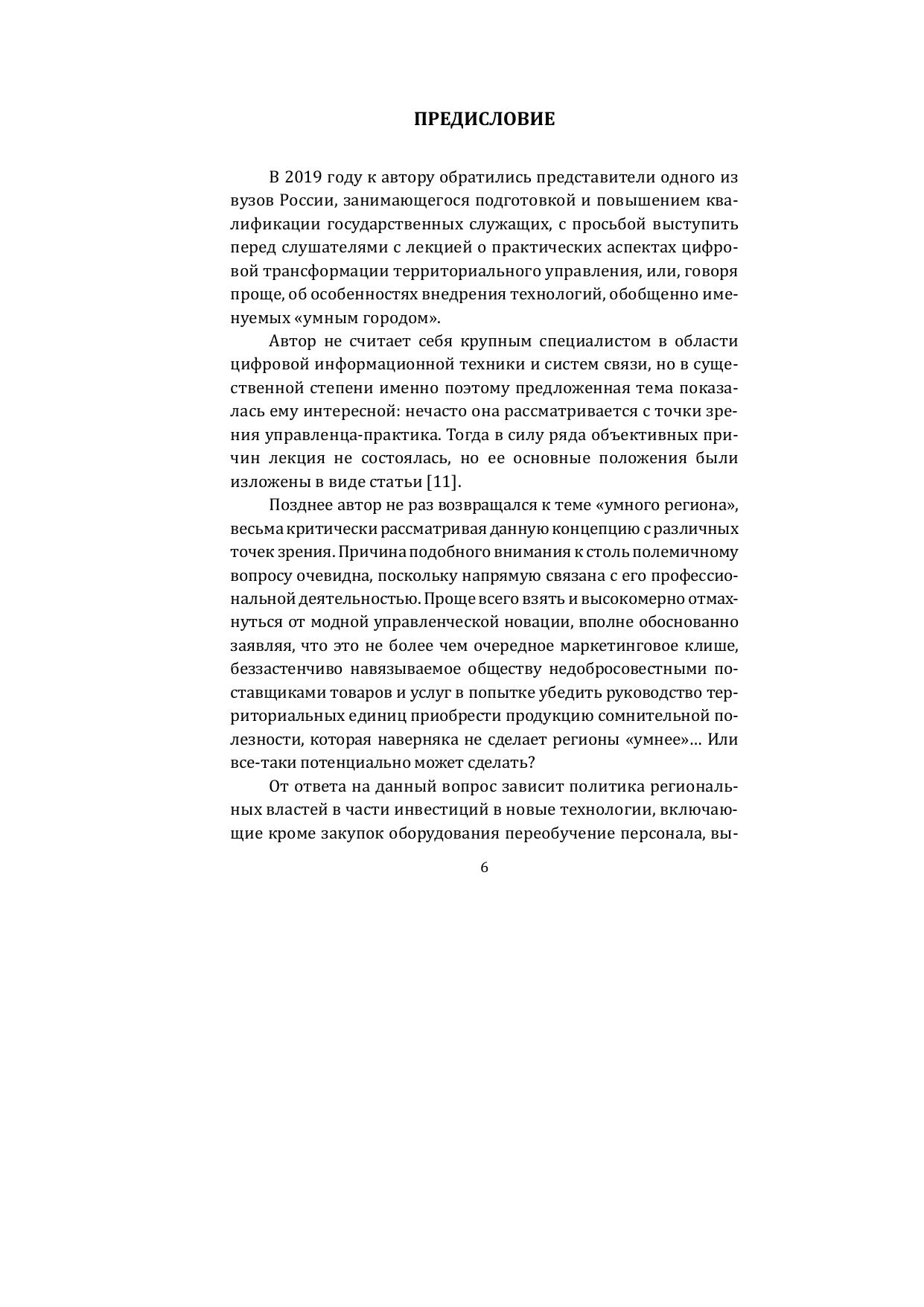 Автор книги – действующий сотрудник органа власти одной из областей Российской Федерации – в данной работе оценивает различные аспекты применимости «умных» технологий для территориального управления и повышения качества жизни граждан. Показано, что цифровая трансформация общества не может являться самоцелью преобразований и позволяет достичь значимого эффекта лишь в сочетании с деятельностью в рамках прочих стратегических направлений. Книга рассчитана на широкий круг читателей – от студентов и преподавателей высших учебных заведений, готовящих специалистов в области управления, до сотрудников территориальных администраций и муниципальных образований.