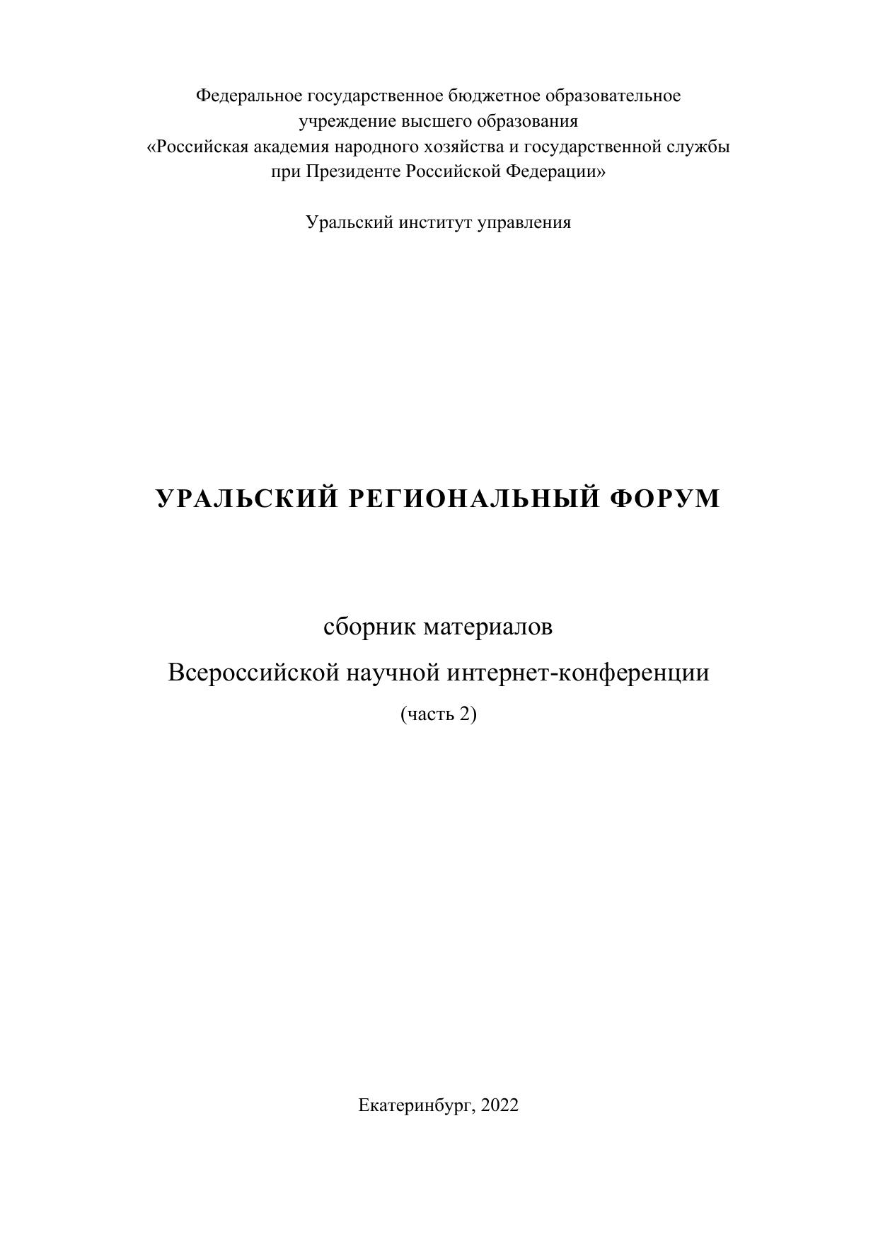 Уральский региональный форум: сборник материалов Всероссийской научной интернет-конференции. В 2-х частях. Ч. 2