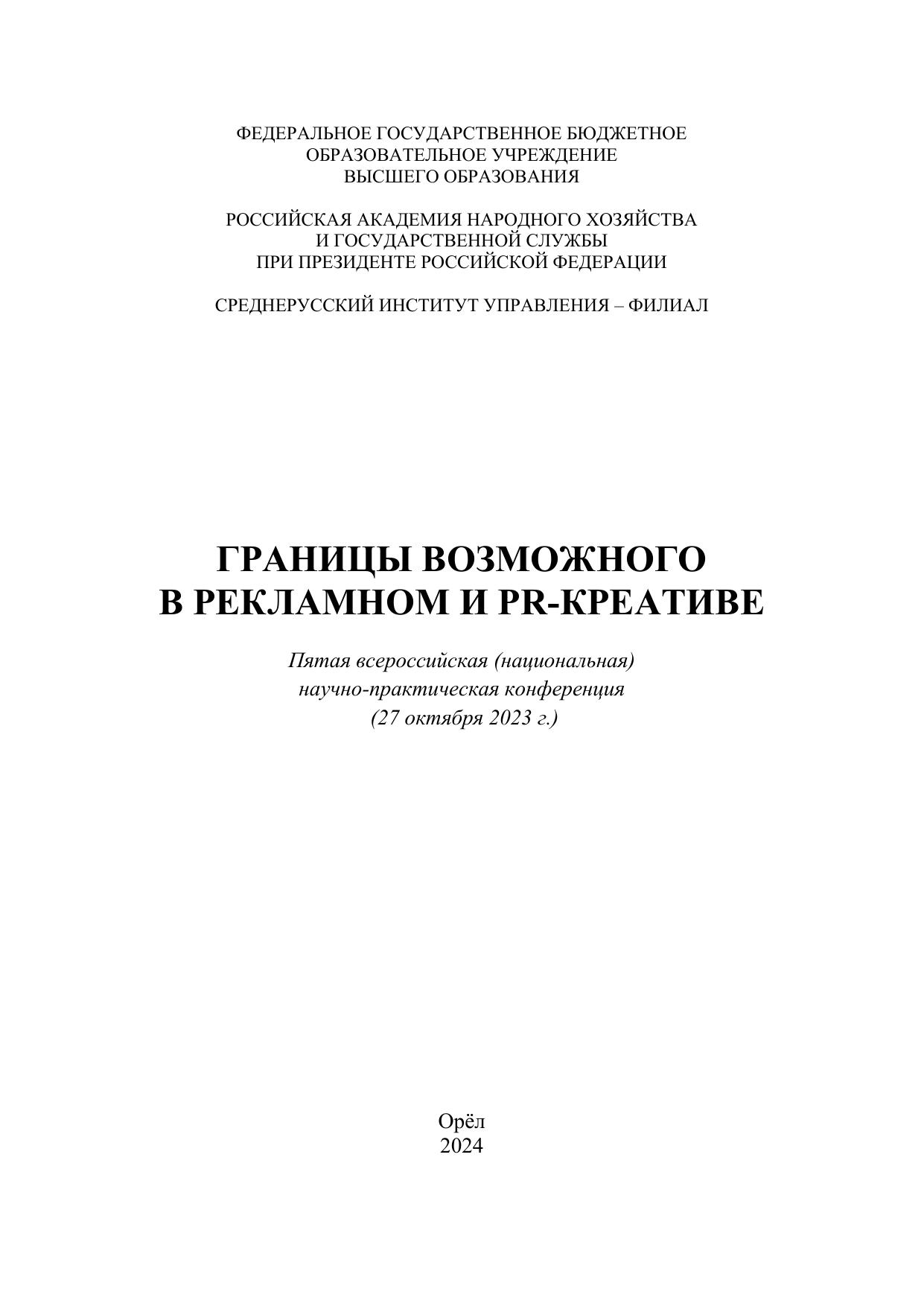 Границы возможного в рекламном и PR-креативе: Сборник материалов Пятой Всероссийской (национальной) научно-практической конференции (27 октября 2023 г.)