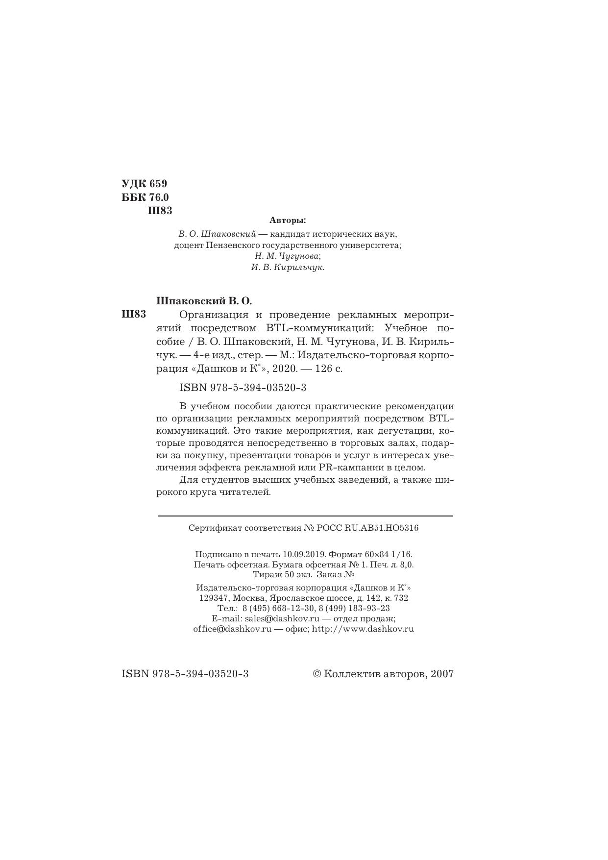 В учебном пособии даются практические рекомендации по организации рекламных мероприятий посредством BTL-коммуникаций. Это такие мероприятия, как дегустации, которые проводятся непосредственно в торговых залах, подарки за покупку, презентации товаров и услуг в интересах увеличения эффекта рекламной или PR-кампании в целом. Для студентов высших учебных заведений, а также широкого круга читателей.