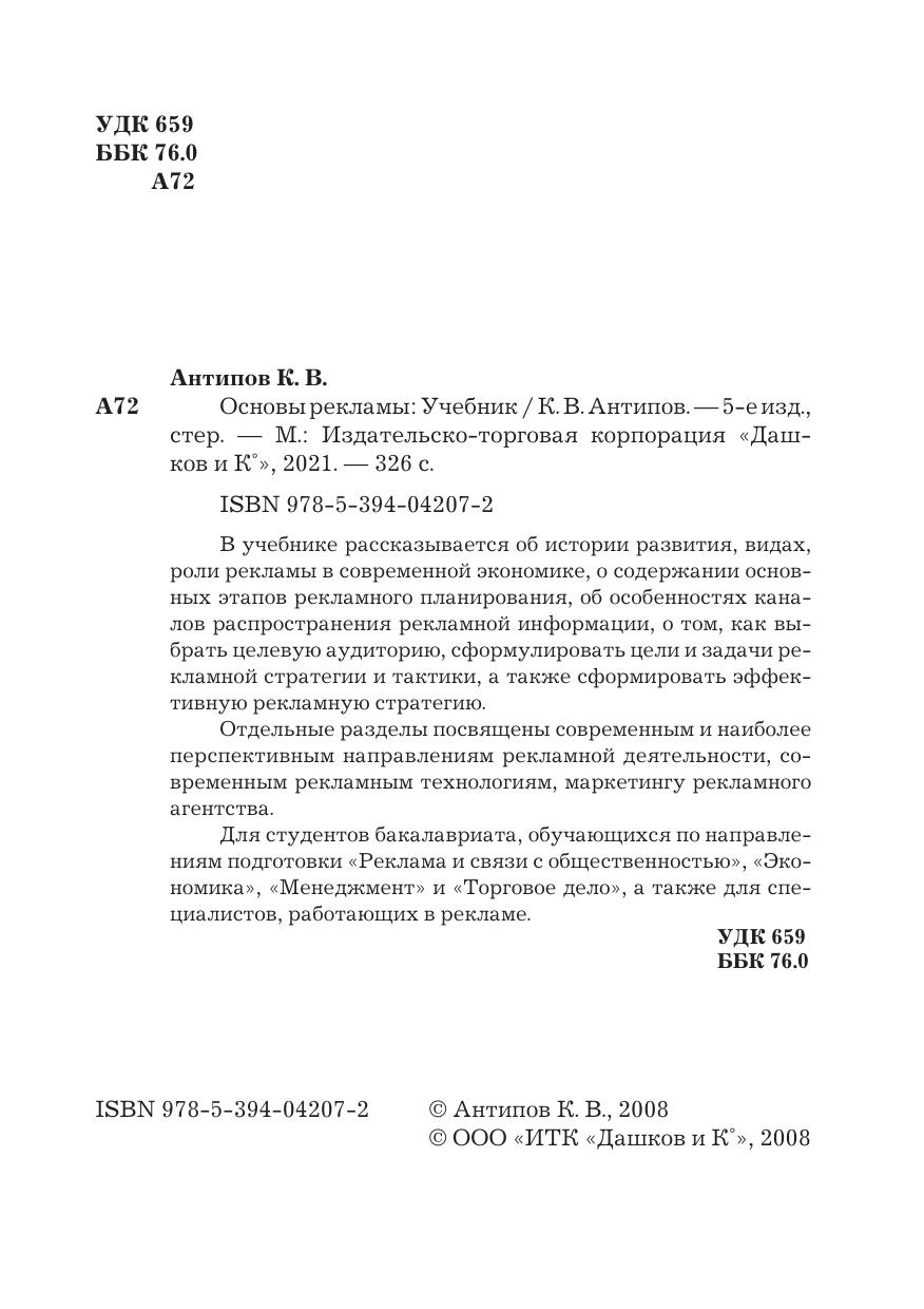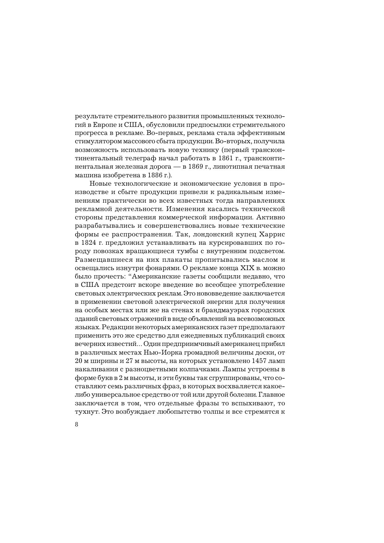 В учебнике рассказывается об истории развития, видах, роли рекламы в современной экономике, о содержании основных этапов рекламного планирования, об особенностях каналов распространения рекламной информации, о том, как выбрать целевую аудиторию, сформулировать цели и задачи рекламной стратегии и тактики, а также сформировать эффективную рекламную cтратегию. Отдельные разделы посвящены современным и наиболее перспективным направлениям рекламной деятельности, современным рекламным технологиям, маркетингу рекламного агентства. Для студентов бакалавриата, обучающихся по направлениям подготовки «Реклама и связи с общественностью», «Экономика», «Менеджмент» и «Торговое дело», а также для специалистов, работающих в рекламе.
