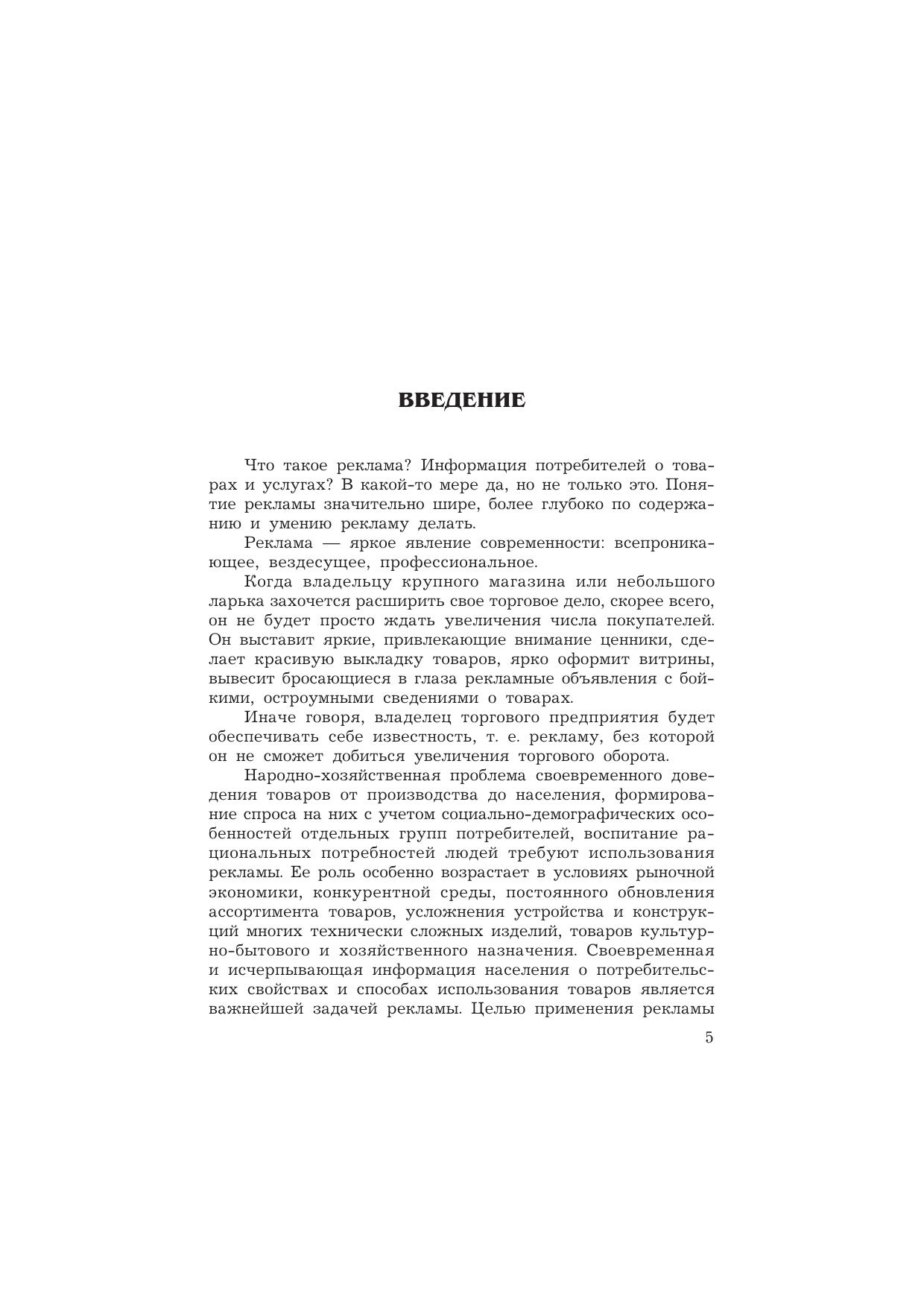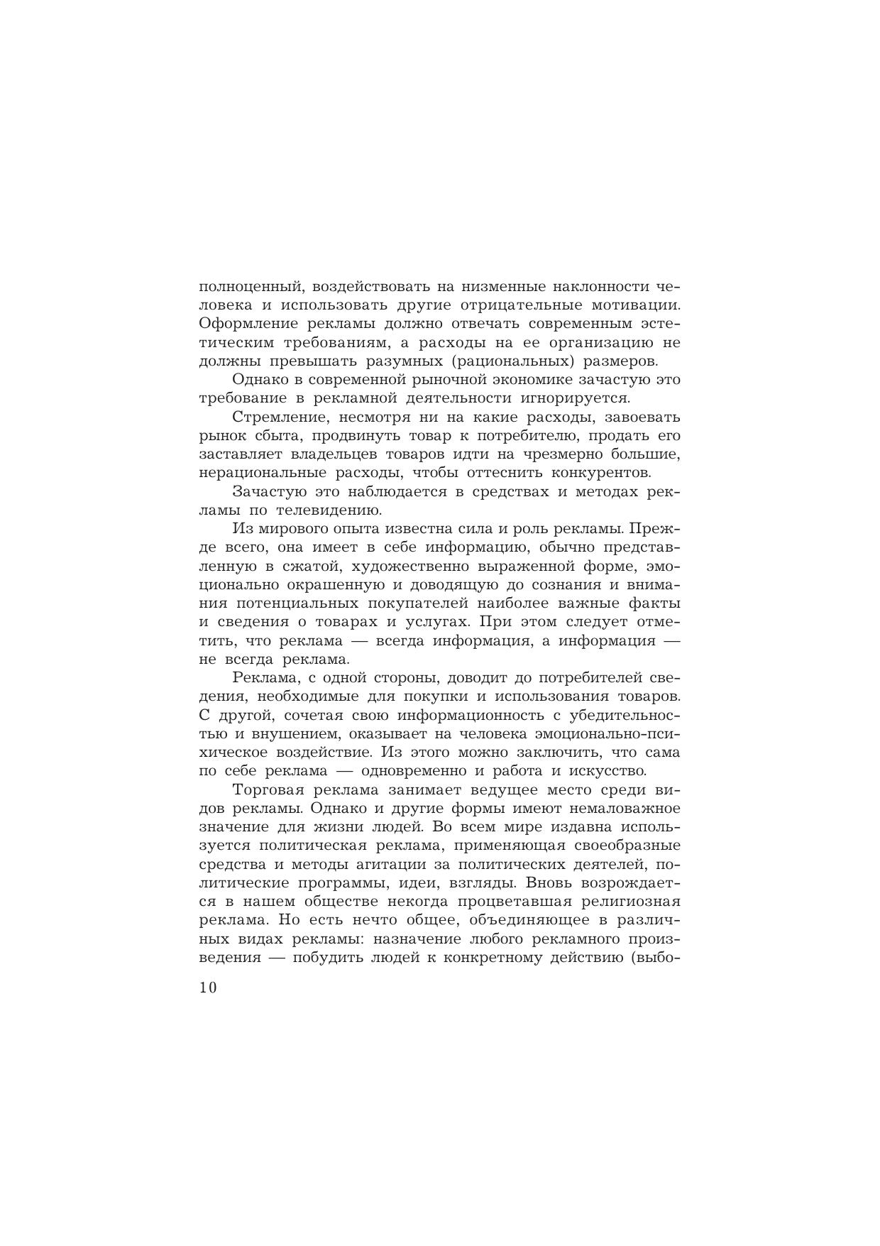 В учебнике с учетом зарубежного и отечественного опыта освещаются социально-психологические основы рекламы; основные средства маркетинговых коммуникаций и их применение в рекламе; классификации рекламных средств, их характеристика, эффективность применения. Специальные разделы посвящены организации рекламной деятельности, основам разработки рекламных текстов, организации паблик рилейшнз на предприятии и некоторым другим вопросам. Для студентов бакалавриата, обучающихся по направлениям подготовки "Торговое дело", "Менеджмент", "Реклама и связи с общественностью", а также работников рекламно-информационных агентств и рекламных служб.