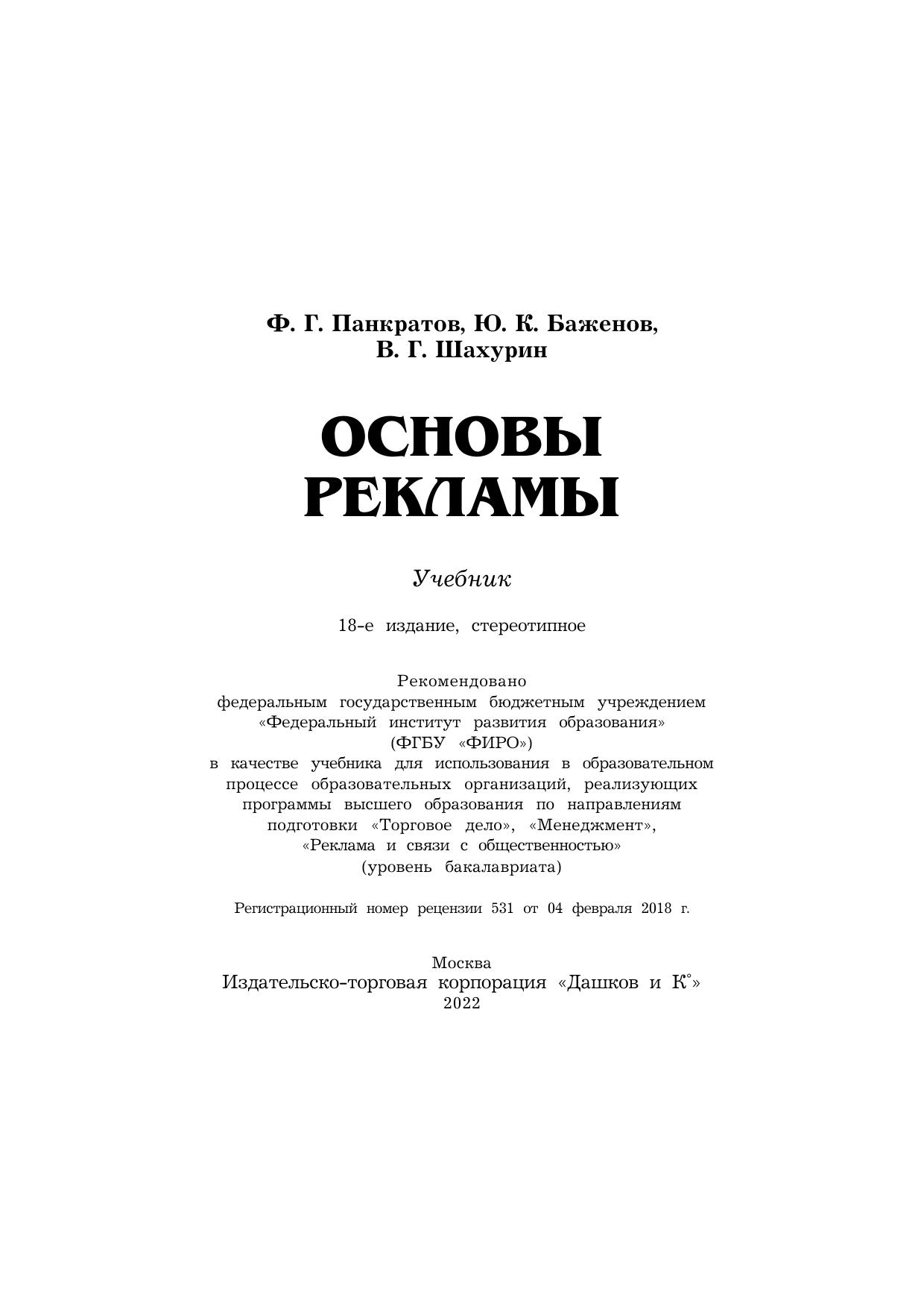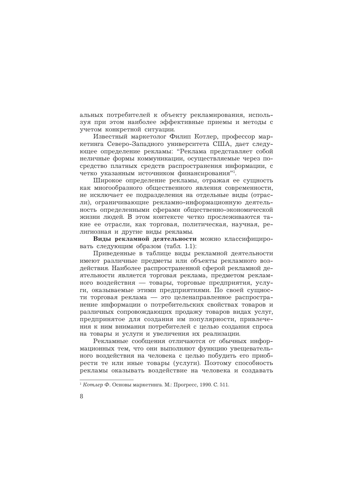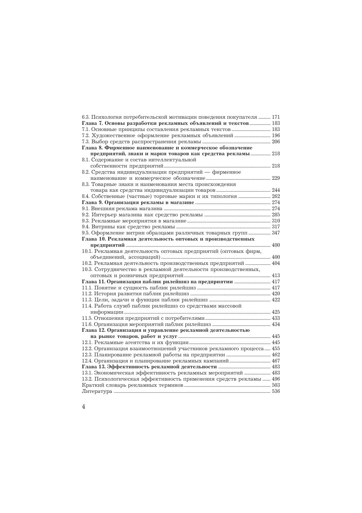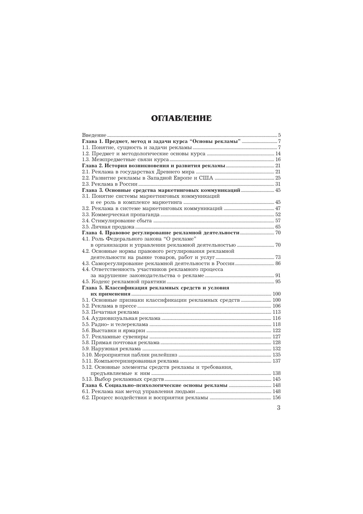 В учебнике с учетом зарубежного и отечественного опыта освещаются социально-психологические основы рекламы; основные средства маркетинговых коммуникаций и их применение в рекламе; классификации рекламных средств, их характеристика, эффективность применения. Специальные разделы посвящены организации рекламной деятельности, основам разработки рекламных текстов, организации паблик рилейшнз на предприятии и некоторым другим вопросам. Для студентов бакалавриата, обучающихся по направлениям подготовки "Торговое дело", "Менеджмент", "Реклама и связи с общественностью", а также работников рекламно-информационных агентств и рекламных служб.