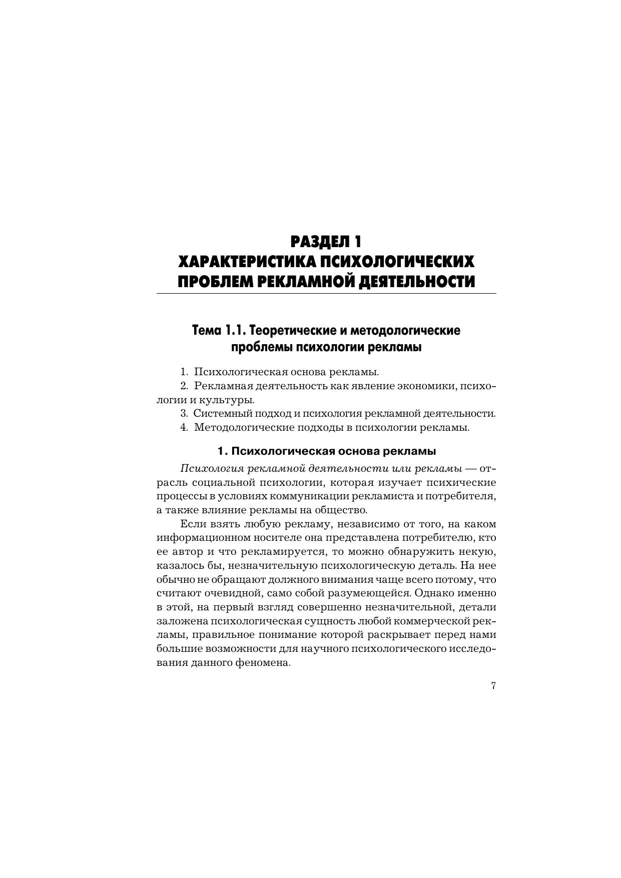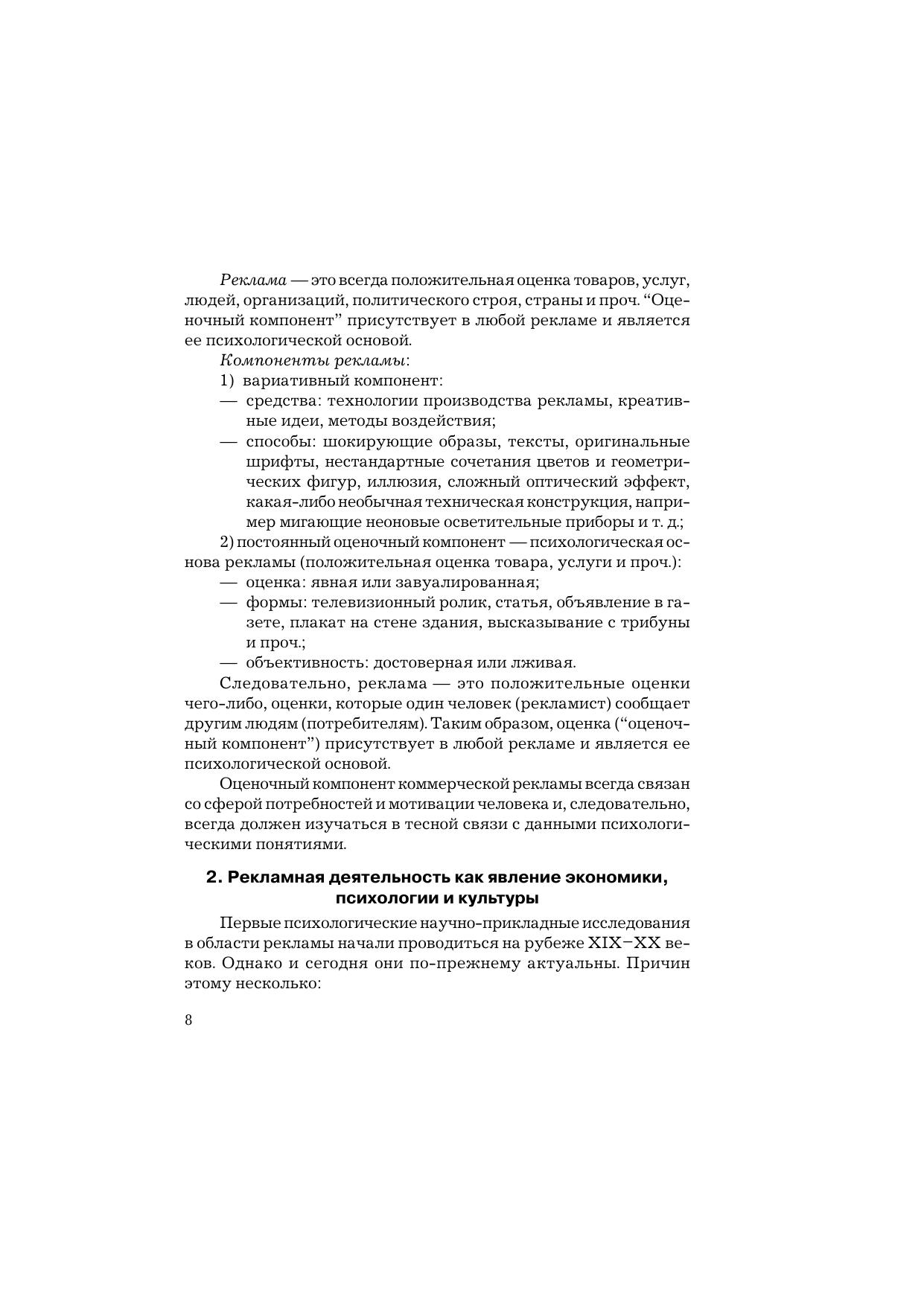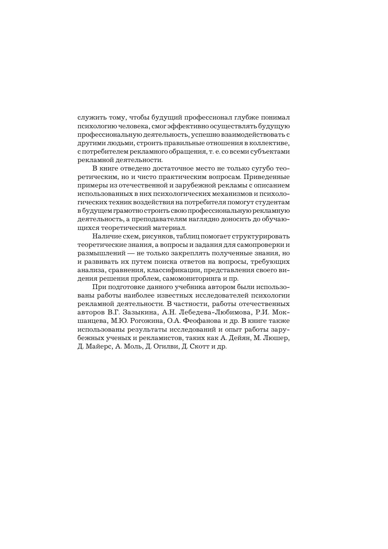 В учебнике обобщен теоретический, методологический и практический материал, связанный с анализом многочисленных и разнообразных проблем в области психологии рекламной деятельности. Раскрыты проблемы психологической эффективности рекламы, механизмы психологического воздействия рекламы на потребителя, психологические аспекты принятия решений и общепсихологические модели в рекламе, систематизированы современные психотехнологии рекламной деятельности, затронуты вопросы психологии творчества в рекламе и многое другое. Для студентов бакалавриата, обучающихся по направлению подготовки «Реклама и связи с общественностью», а также всех, кто интересуется проблемами психологии рекламной деятельности.