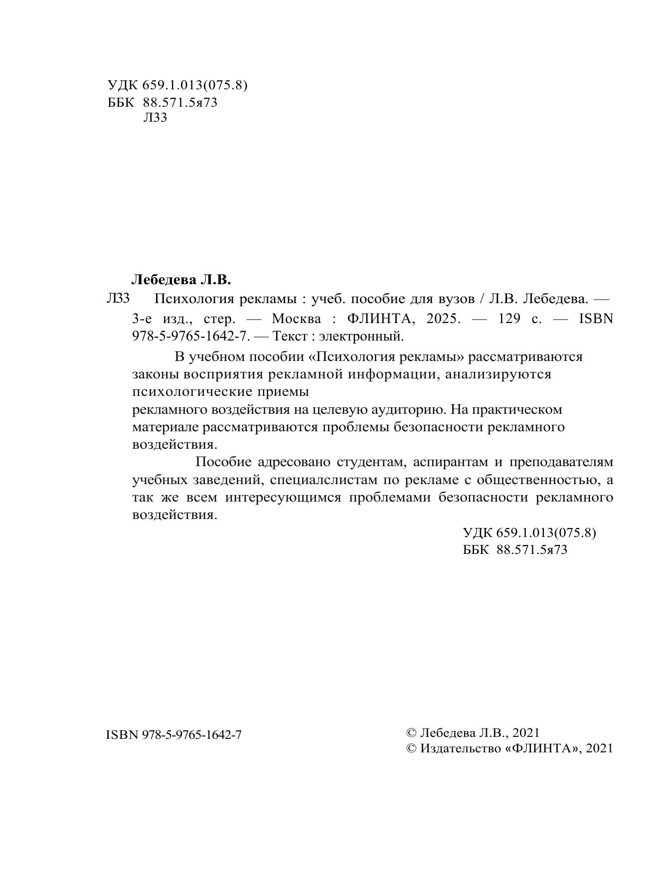 В учебном пособии «Психология рекламы» рассматриваются законывосприятия рекламной информации, анализируются психологические приемы рекламного воздействия на целевую аудиторию. На практическом материале рассматриваются проблемы безопасности рекламного воздействия. Пособие адресовано студентам, аспирантам и преподавателям учебных заведений, специалслистам по рекламе с общественностью, а так же всем интересующимся проблемами безопасности рекламного воздействия.