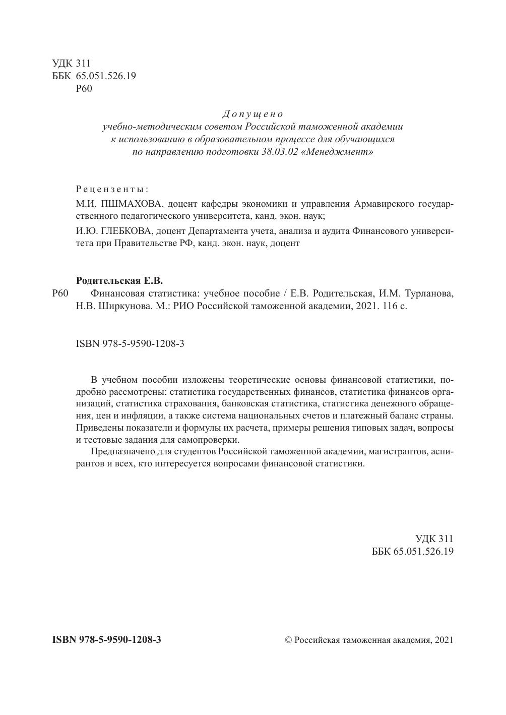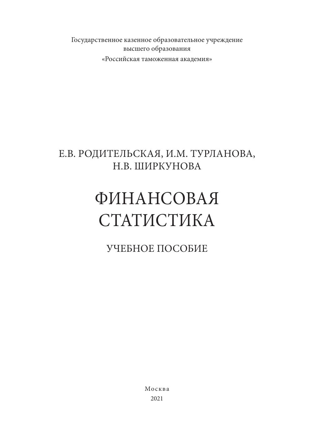 Предназначено для студентов Российской таможенной академии, магистрантов, аспирантов и всех, кто интересуется вопросами финансовой статистики.