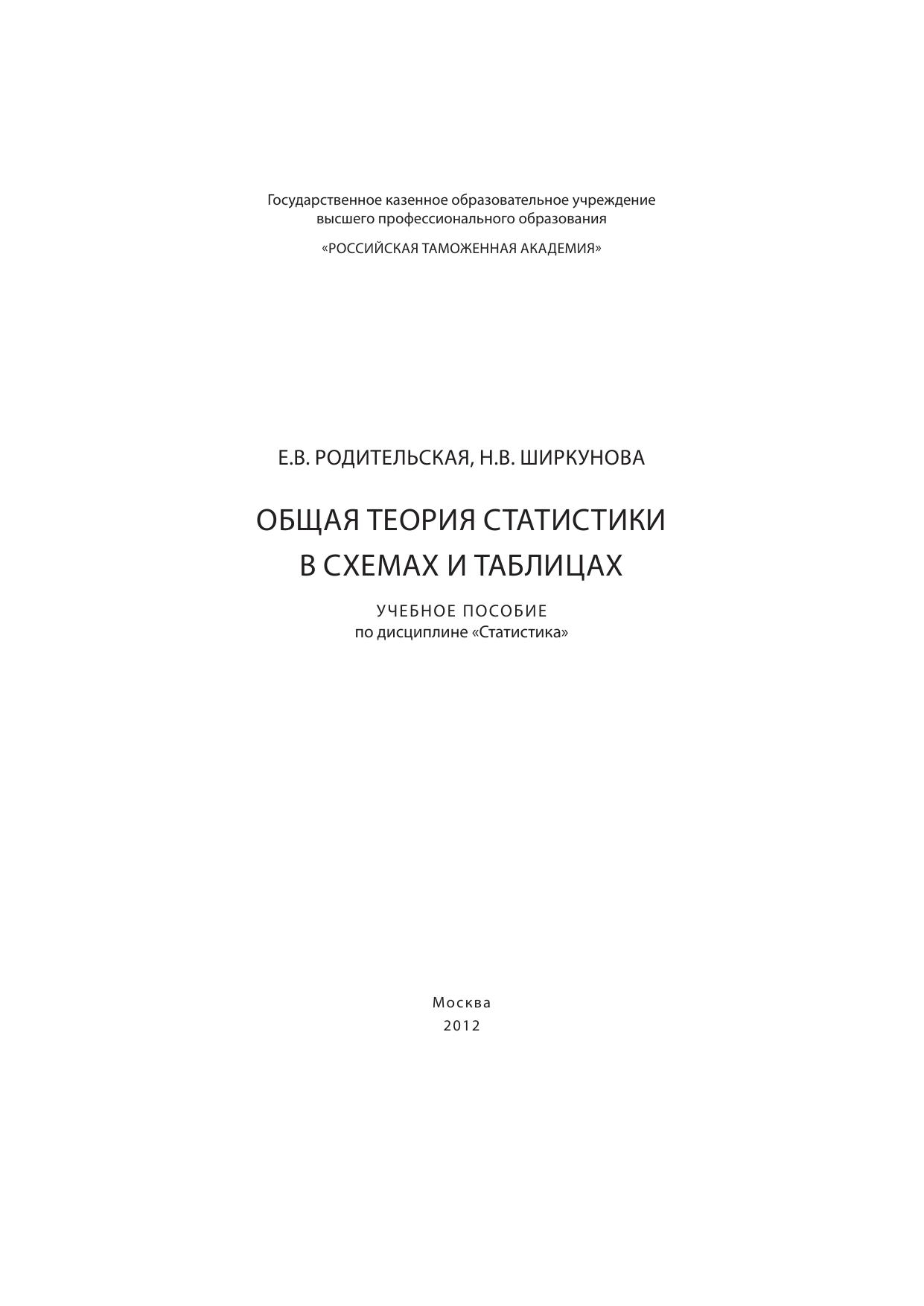 В учебном пособии изложен курс дисциплины «Статистика» в виде таблиц, схем и диаграмм, что позволяет более наглядно представить методологию и методы статистического анализа явлений и процессов в социально-экономической сфере. Все темы в полном объеме охватывают вопросы программы. По каждой теме разобрано достаточное количество задач, для самопроверки включены тестовые материалы и контрольные вопросы. Предназначено для студентов очной и заочной форм обучения по специальности «Таможенное дело» и направлениям подготовки «Менеджмент», «Экономика».