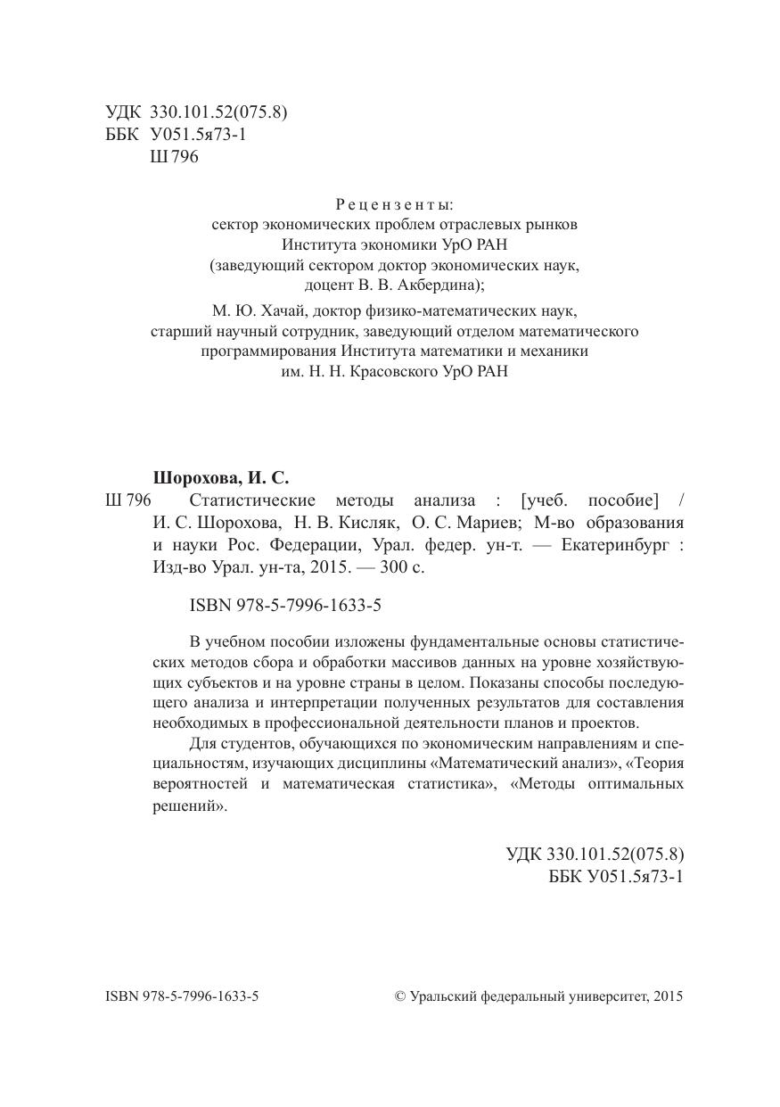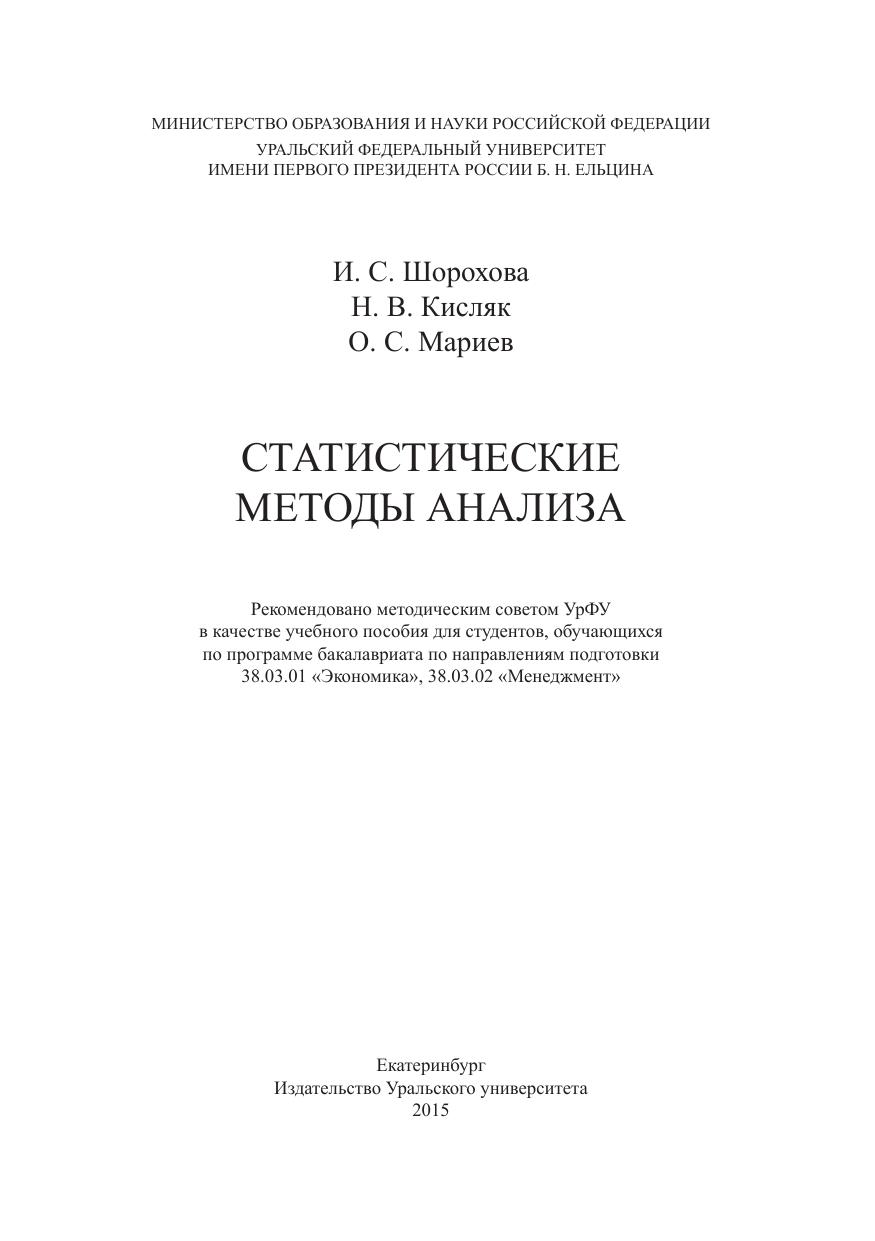В учебном пособии изложены фундаментальные основы статистических методов сбора и обработки массивов данных на уровне хозяйствующих субъектов и на уровне страны в целом. Показаны способы последующего анализа и интерпретации полученных результатов для составления необходимых в профессиональной деятельности планов и проектов. Для студентов, обучающихся по экономическим направлениям и специальностям, изучающих дисциплины «Математический анализ», «Теория вероятностей и математическая статистика», «Методы оптимальных решений».