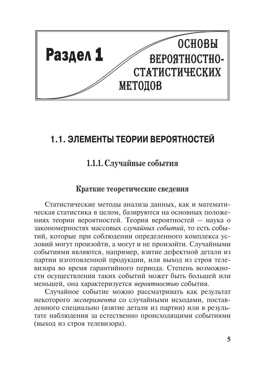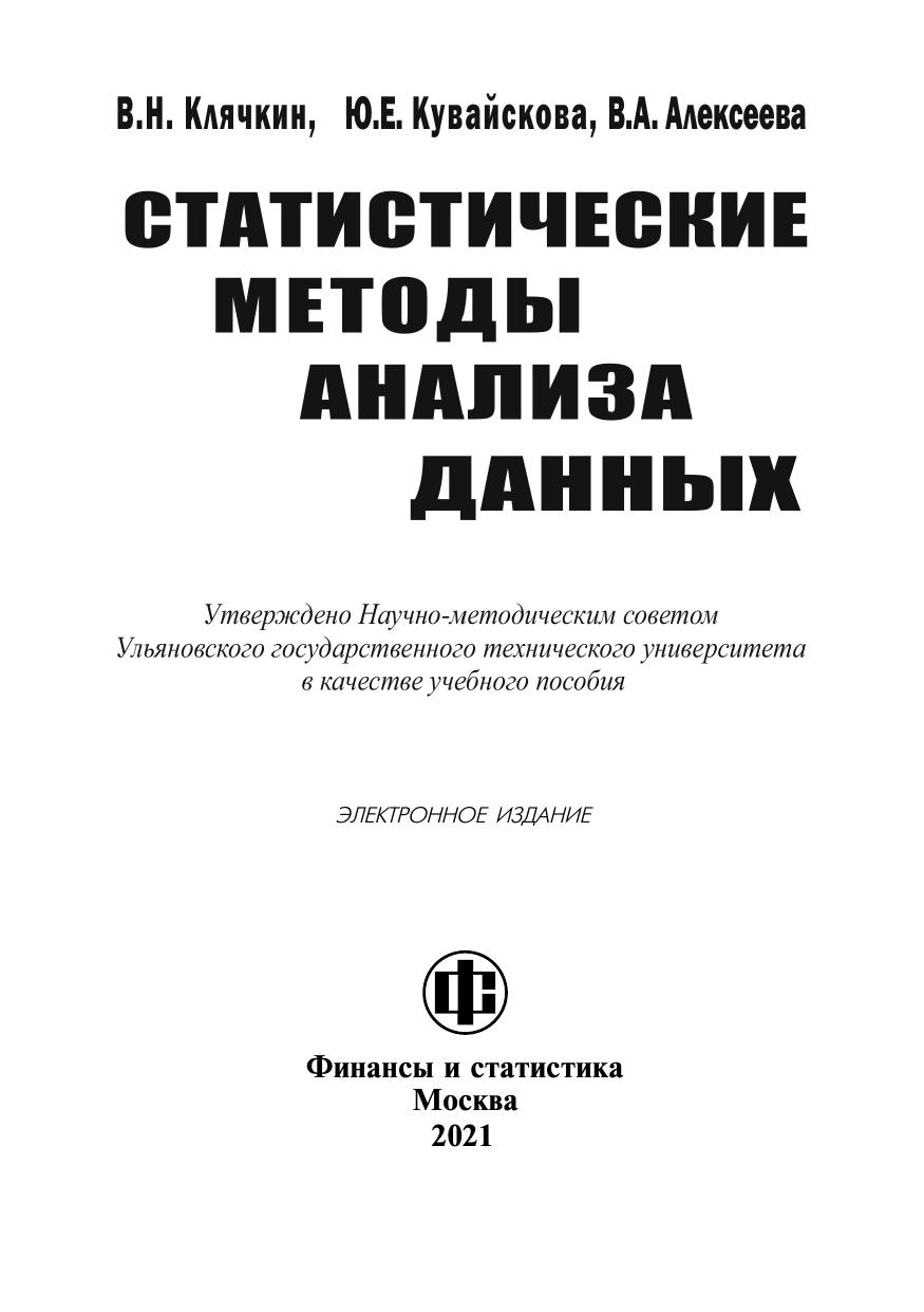 Рассмотрены дисперсионный, корреляционный, регрессионный анализ, элементы анализа случайных процессов, некоторые методы многомерного анализа. По каждой из рассматриваемых тем кратко изложены основные теоретические положения, примеры решения задач, приведены задачи для самостоятельного решения, компьютерные методы решения соответствующих задач и задания для типового расчета.