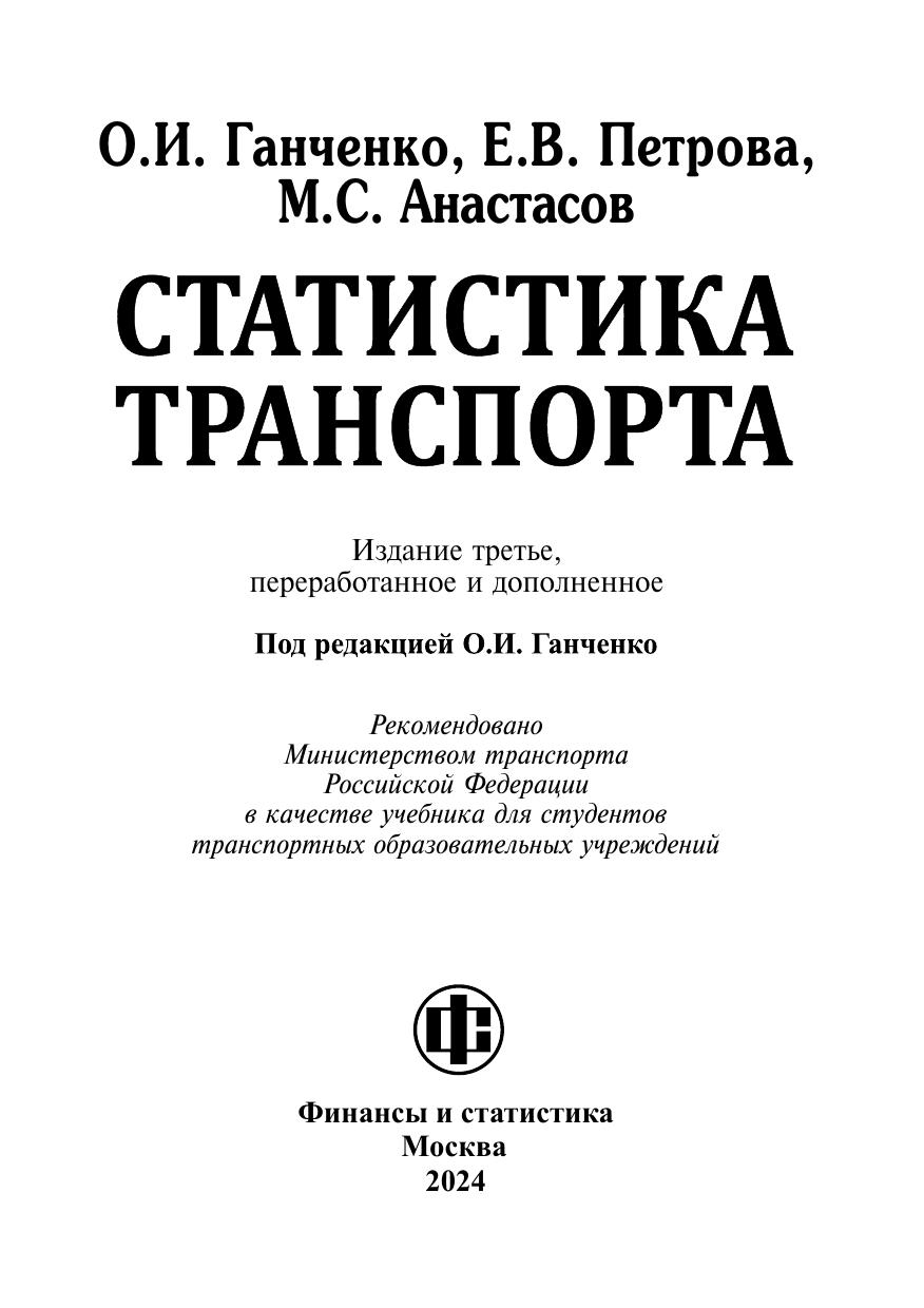 Учебник содержит полный курс статистики транспорта. Рассматриваются статистическое наблюдение на транспорте, статистика перевозок грузов и пассажиров, основного и оборотного капитала, транспортных средств, трудовых ресурсов и их использования, производительности труда, заработной платы и доходов работников транспорта, а также себестоимости перевозок грузов и пассажиров, финансовых результатов деятельности предприятий транспорта. Для преподавателей, аспирантов, студентов транспортных образовательных учреждений и экономических вузов и факультетов, менеджеров.