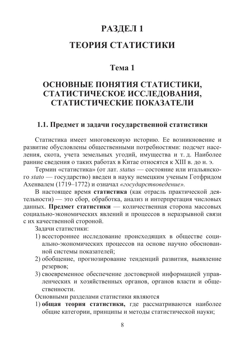В учебно-методическом пособии рассмотрены основы теории статистики, вопросы практического использования статистического анализа, приведены примеры расчета важнейших статистических показателей. К каждой теме прилагаются контрольные вопросы и задания для самостоятельного выполнения. Издание предназначено для студентов высших учебных заведений, обучающихся по направлениям 38.03.01 Экономика, 38.03.02 Менеджмент