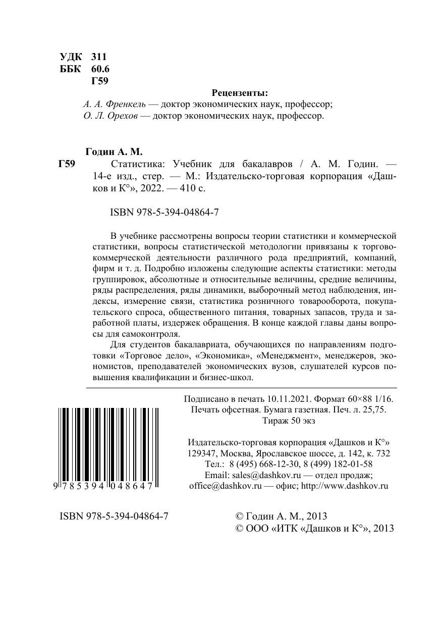 В учебнике рассмотрены вопросы теории статистики и коммерческой статистики, вопросы статистической методологии привязаны к торгово-коммерческой деятельности различного рода предприятий, компаний, фирм и т.д. Подробно изложены следующие аспекты статистики: методы группировок, абсолютные и относительные величины, средние величины, ряды распределения, ряды динамики, выборочный метод наблюдения, индексы, измерение связи, статистика розничного товарооборота, покупательского спроса, общественного питания, товарных запасов, труда и заработной платы, издержек обращения. В конце каждой главы даны вопросы для самоконтроля. Для студентов бакалавриата, обучающихся по направлениям подготовки "Торговое дело", "Экономика", "Менеджмент", менеджеров, экономистов, преподавателей экономических вузов, слушателей курсов повышения квалификации и бизнес-школ.