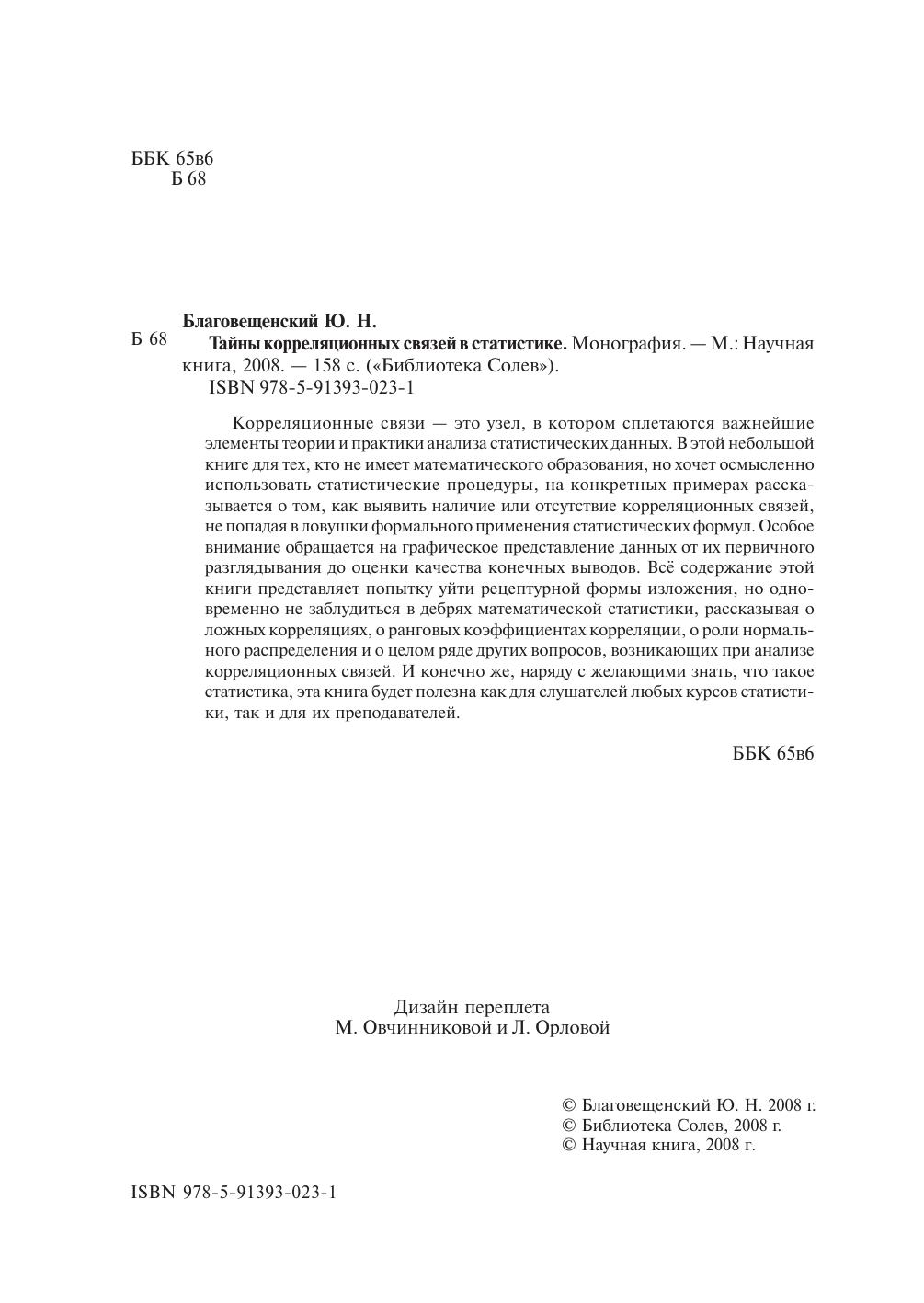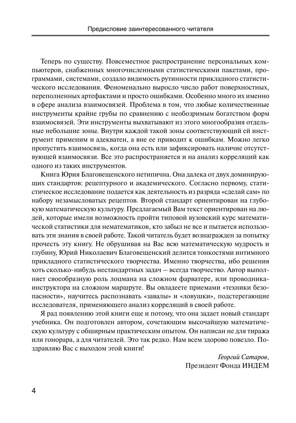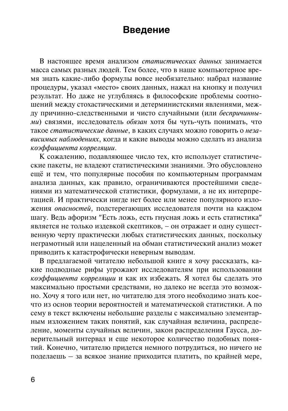Корреляционные связи — это узел, в котором сплетаются важнейшие элементы теории и практики анализа статистических данных. В этой небольшой книге для тех, кто не имеет математического образования, но хочет осмысленно использовать статистические процедуры, на конкретных примерах рассказывается о том, как выявить наличие или отсутствие корреляционных связей, не попадая в ловушки формального применения статистических формул. Особое внимание обращается на графическое представление данных от их первичного разглядывания до оценки качества конечных выводов. Всё содержание этой книги представляет попытку уйти рецептурной формы изложения, но одновременно не заблудиться в дебрях математической статистики, рассказывая о ложных корреляциях, о ранговых коэффициентах корреляции, о роли нормального распределения и о целом ряде других вопросов, возникающих при анализе корреляционных связей. И конечно же, наряду с желающими знать, что такое статистика, эта книга будет полезна как для слушателей любых курсов статистики, так и для их преподавателей.