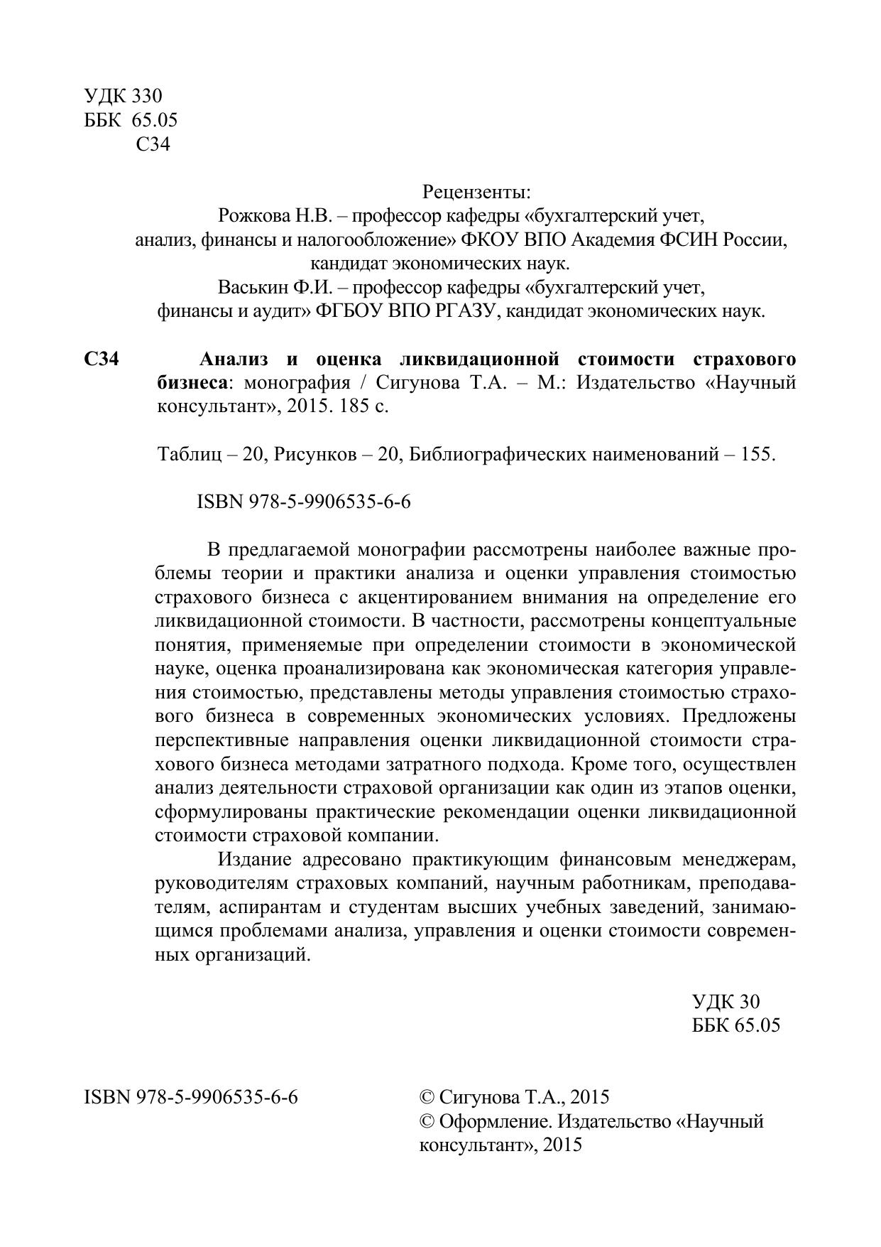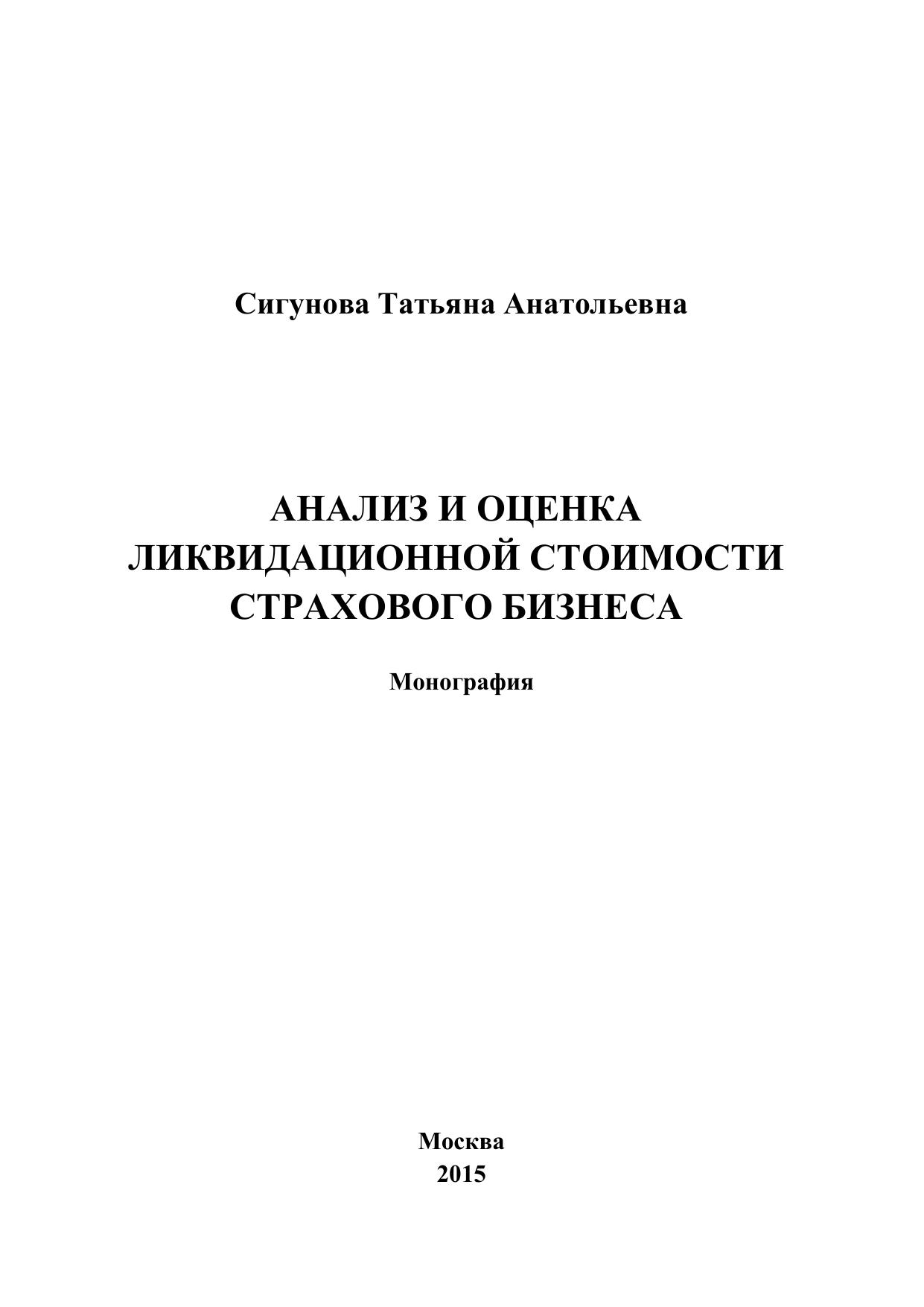 Анализ и оценка ликвидационной стоимости страхового бизнеса: монография