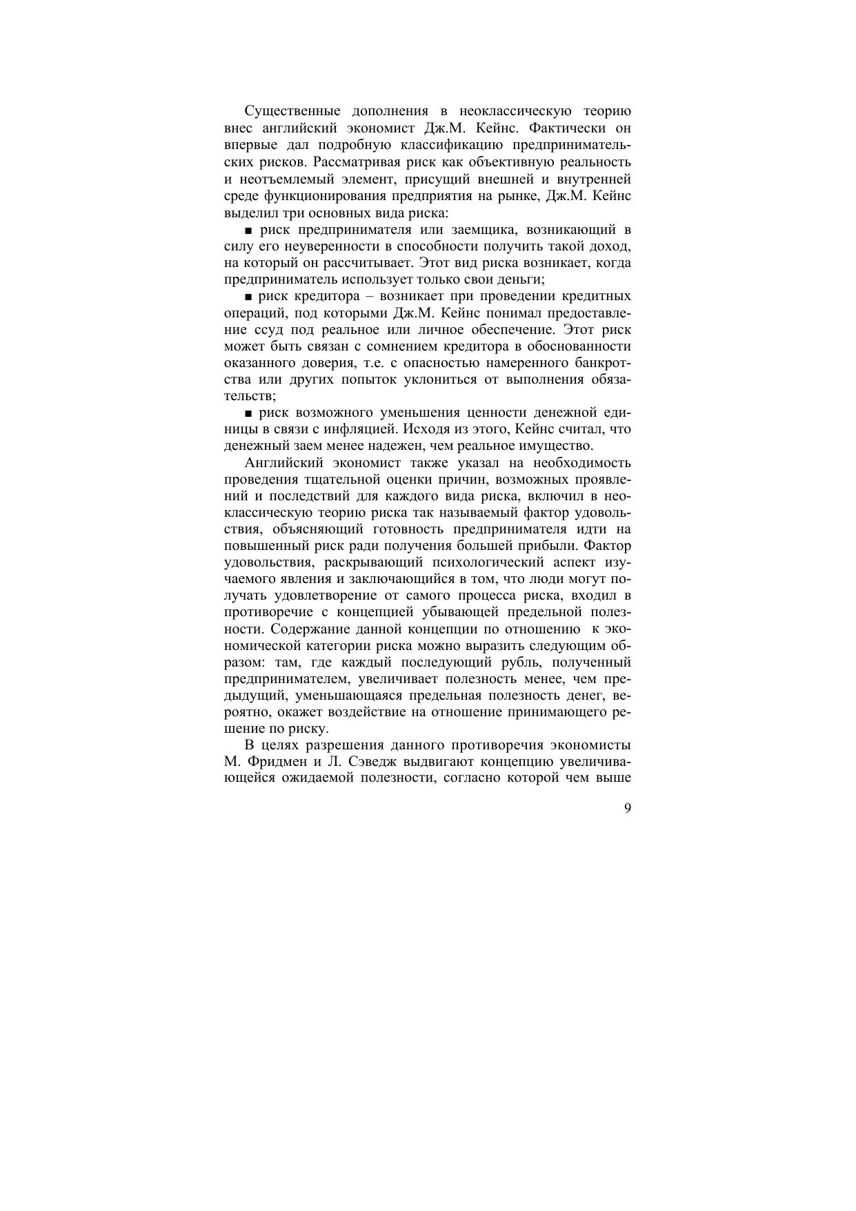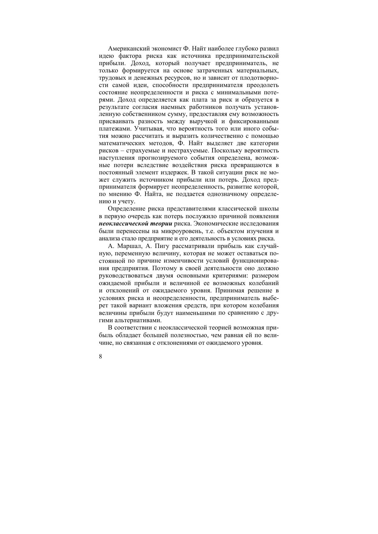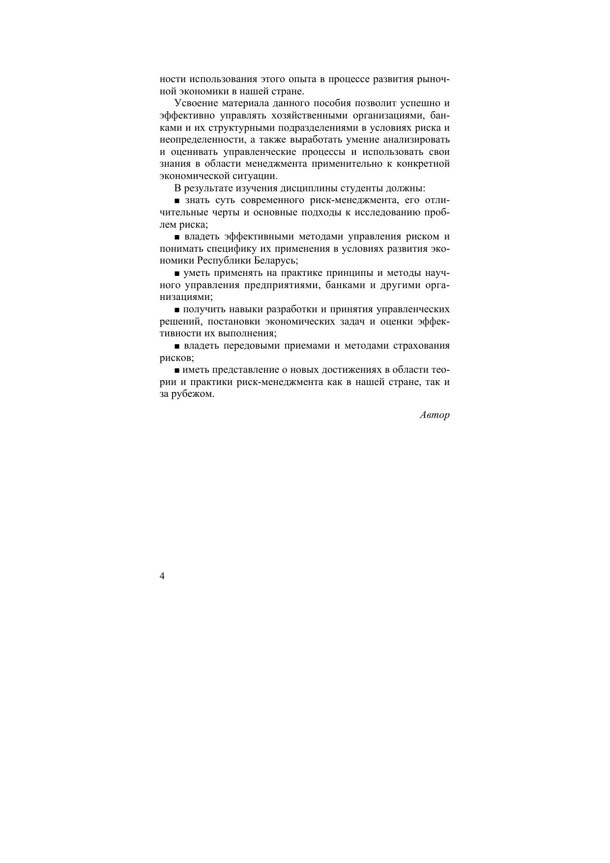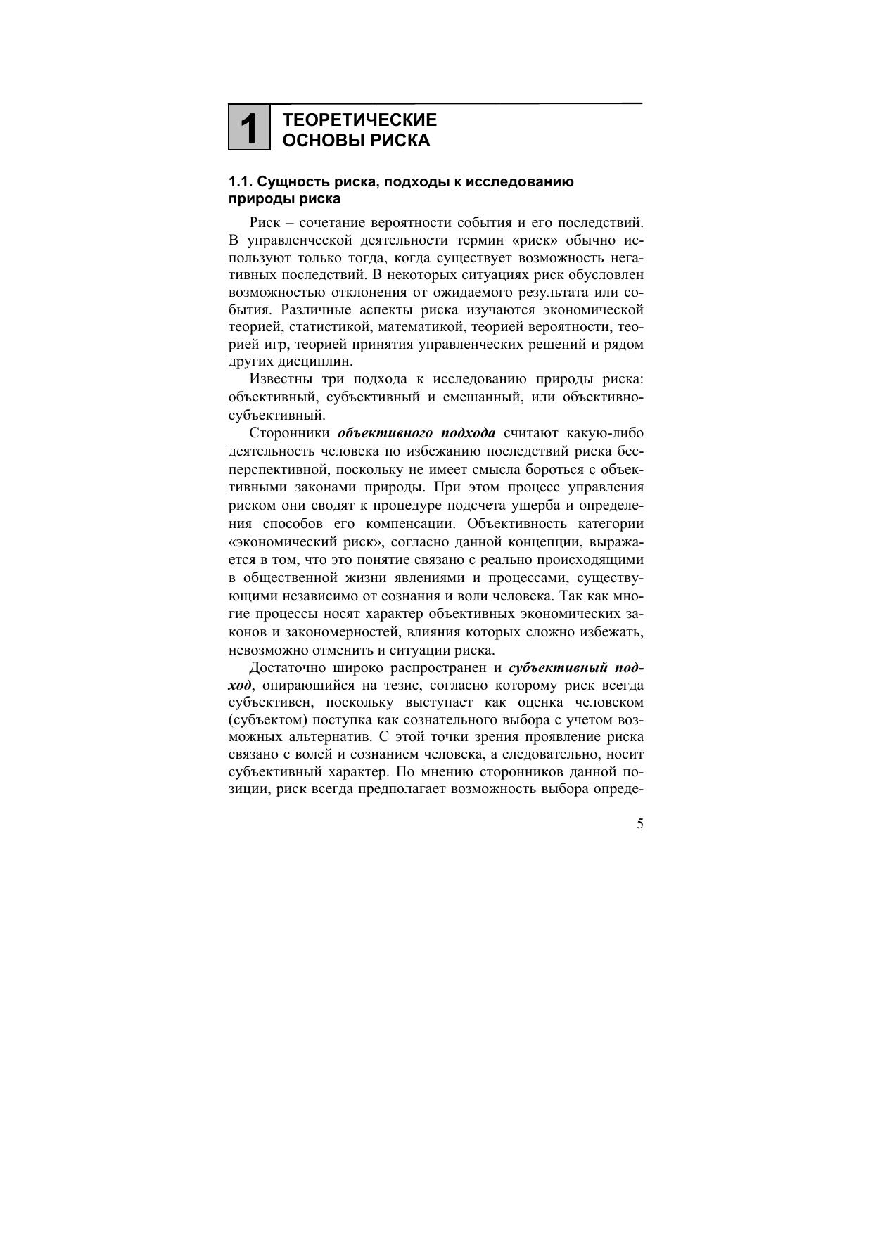 Рассматривается сущность риска, классификация рисков, система управления рисками, методы анализа и оценки риска и его последствия, профилактика риска и методы его снижения. Подробно характеризуются проектные и банковские риски, методы управления ими. Для студентов экономических специальностей вузов. Может быть использовано учащимися ССУЗов, специалистами.