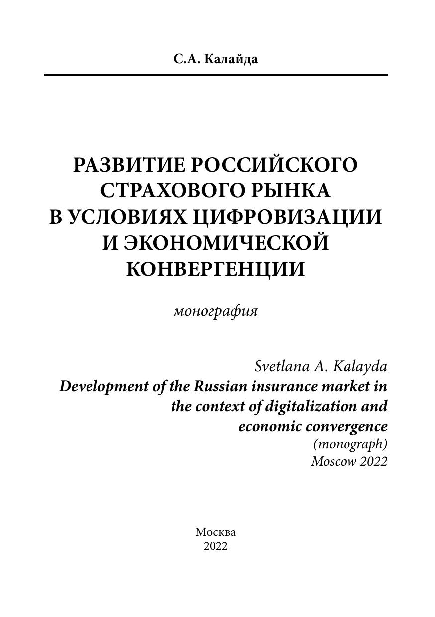 Монография посвящена изучению влияния двух современных тенденций общественного развития – цифровизации и экономической конвергенции – на российский страховой рынок.