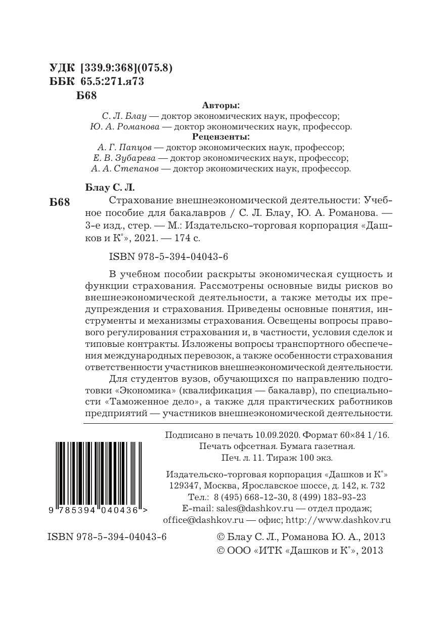В учебном пособии раскрыты экономическая сущность и функции страхования. Рассмотрены основные виды рисков во внешнеэкономической деятельности, а также методы их предупреждения и страхования. Приведены основные понятия, инструменты и механизмы страхования. Освещены вопросы правового регулирования страхования и, в частности, условия сделок и типовые контракты. Изложены вопросы транспортного обеспечения международных перевозок, а также особенности страхования ответственности участников внешнеэкономической деятельности. Для студентов вузов, обучающихся по направлению подготовки "Экономика" (квалификация - бакалавр), по специальности "Таможенное дело", а также для практических работников предприятий - участников внешнеэкономической деятельности. Гриф.