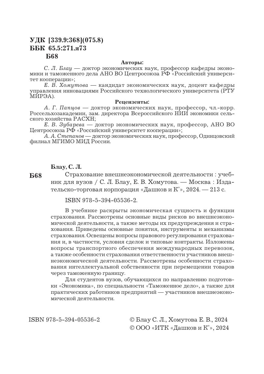 предупреждения и страхования. Приведены основные понятия, инструменты и механизмы страхования. Освещены вопросы правового регулирования страхования и, в частности, условия сделок и типовые контракты. Изложены вопросы транспортного обеспечения международных перевозок, а также особенности страхования ответственности участников внешнеэкономической деятельности. Рассмотрены особенности страхования интеллектуальной собственности при перемещении товаров через таможенную границу.