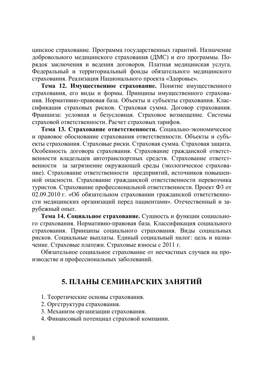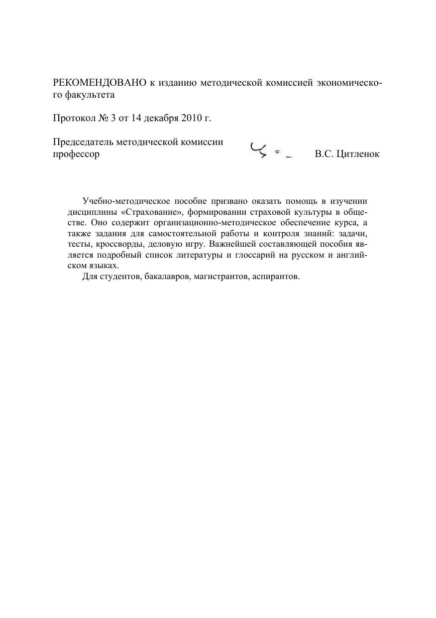 Учебно-методическое пособие призвано оказать помощь в изучении дисциплины «Страхование», формировании страховой культуры в обществе. Оно содержит организационно-методическое обеспечение курса, а также задания для самостоятельной работы и контроля знаний: задачи, тесты, кроссворды, деловую игру. Важнейшей составляющей пособия является подробный список литературы и глоссарий на русском и английском языках. Для студентов, бакалавров, магистрантов, аспирантов.