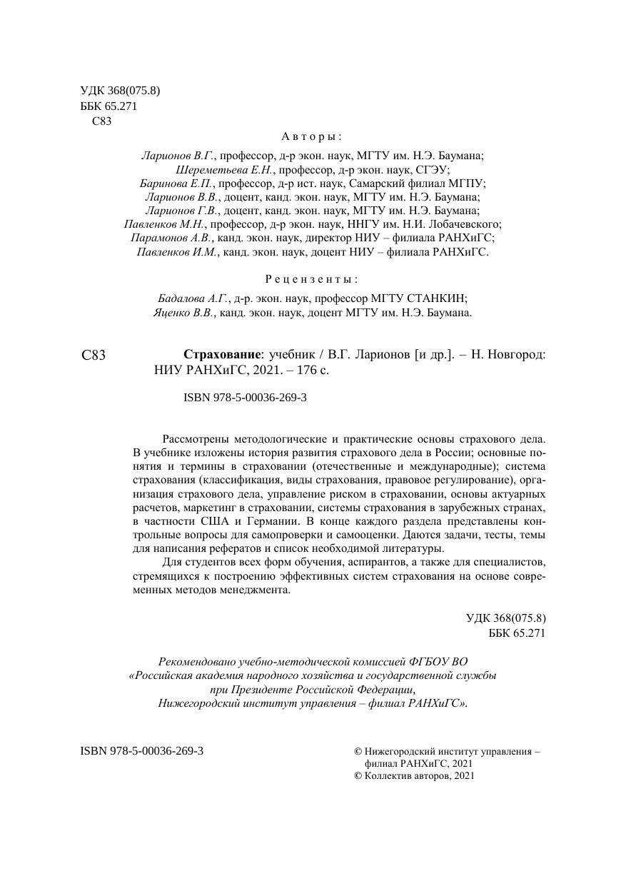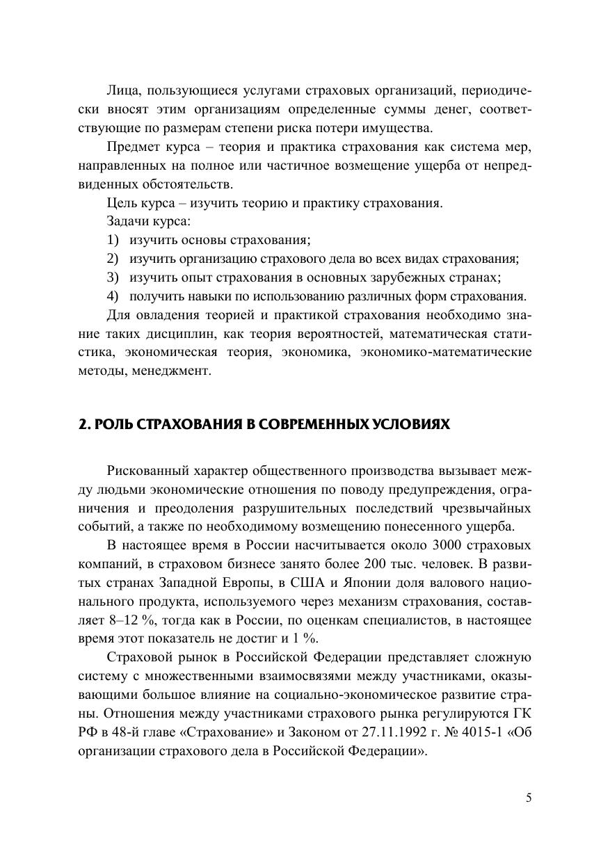Рассмотрены методологические и практические основы страхового дела. В учебнике изложены история развития страхового дела в России; основные по-нятия и термины в страховании (отечественные и международные); система страхования (классификация, виды страхования, правовое регулирование), орга-низация страхового дела, управление риском в страховании, основы актуарных расчетов, маркетинг в страховании, системы страхования в зарубежных странах, в частности США и Германии. В конце каждого раздела представлены кон-трольные вопросы для самопроверки и самооценки. Даются задачи, тесты, темы для написания рефератов и список необходимой литературы. Для студентов всех форм обучения, аспирантов, а также для специалистов, стремящихся к построению эффективных систем страхования на основе совре-менных методов менеджмента.