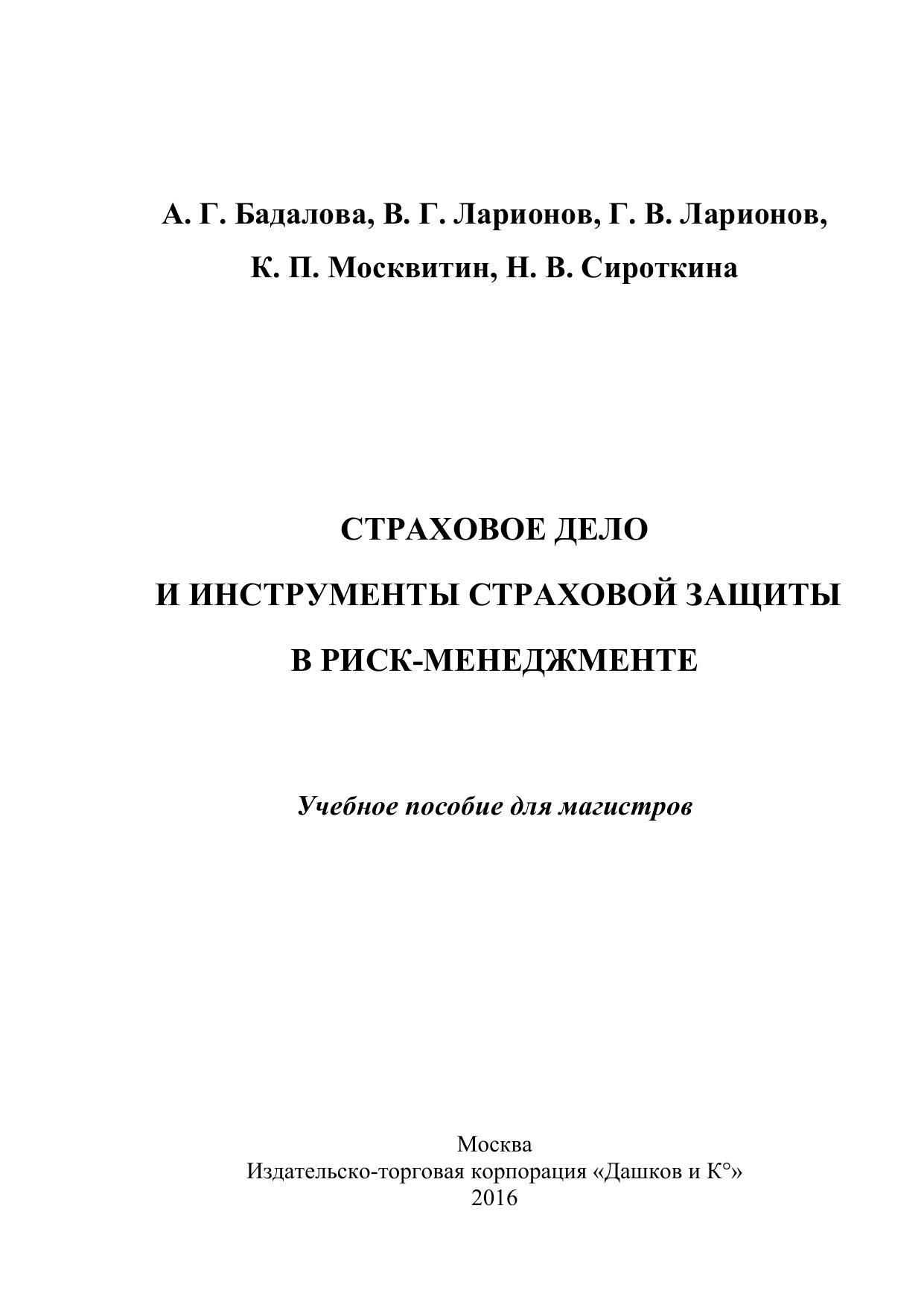 Страховое дело и инструменты страховой защиты в риск-менеджменте: Учебное пособие