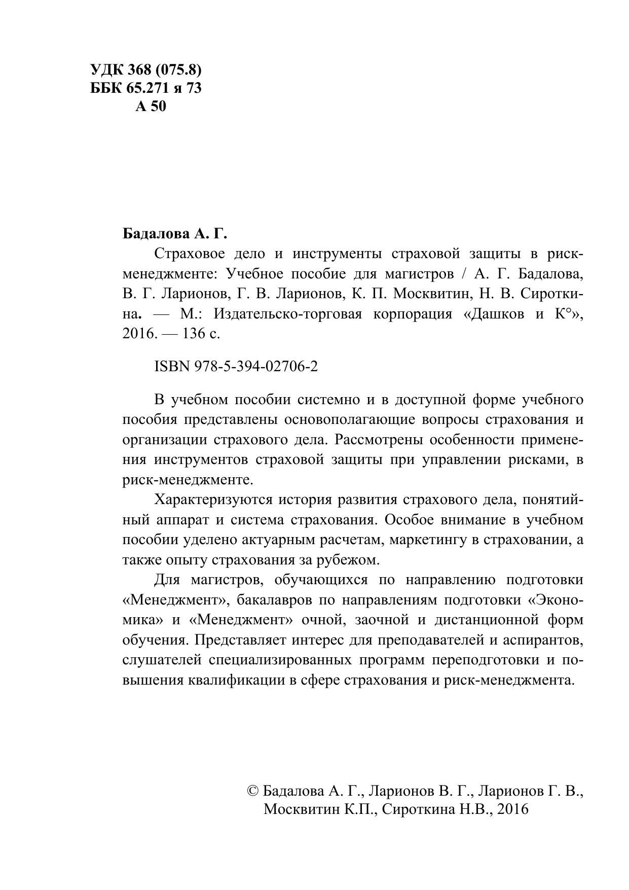 Авторы: Бадалова А.Г., Ларионов В.Г., Ларионов Г.В., Москвитин К.П.