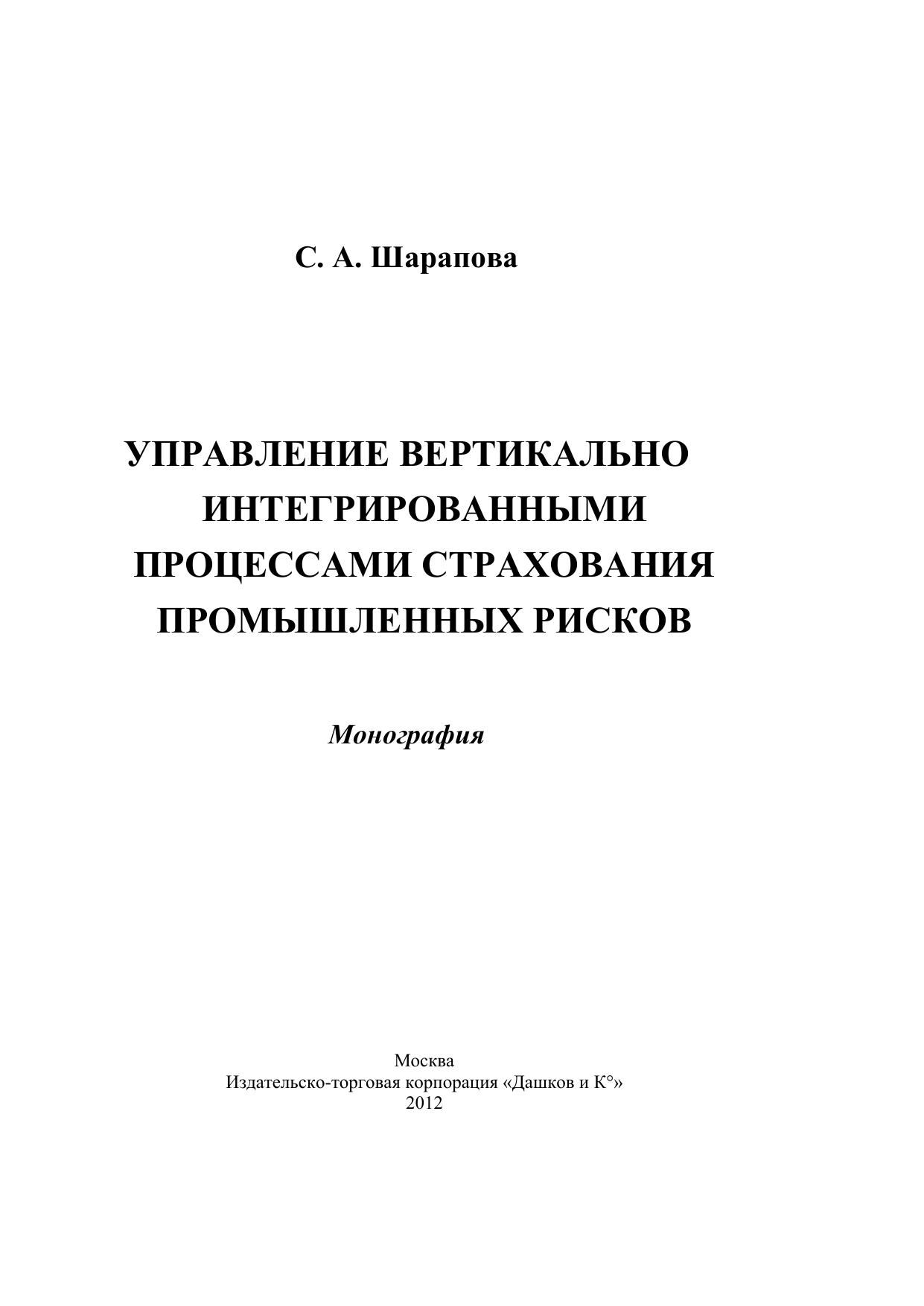 Управление вертикально интегрированными процессами страхования промышленных рисков: монография