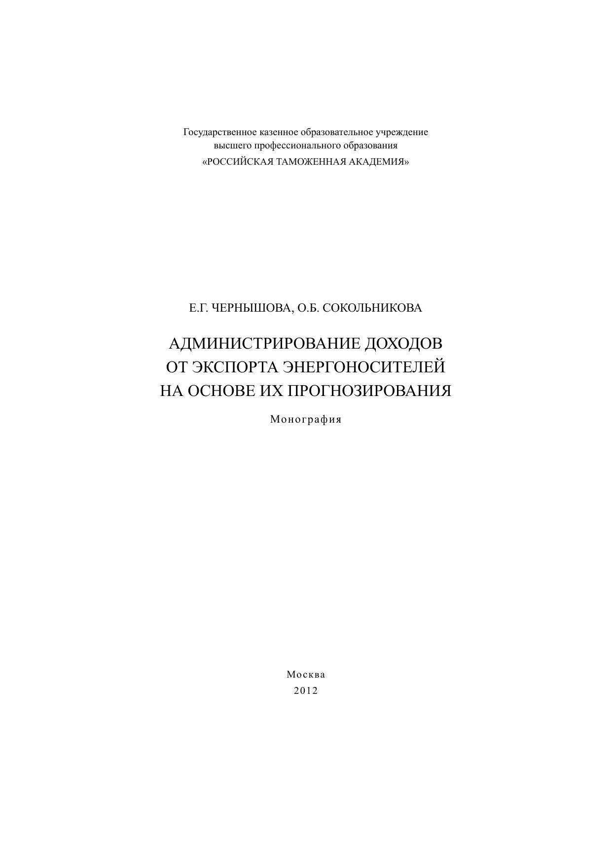 Администрирование доходов от экспорта энергоносителей на основе их прогнозирования: монография