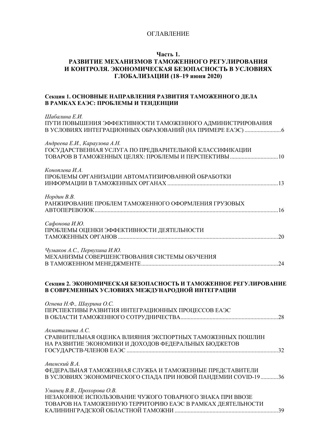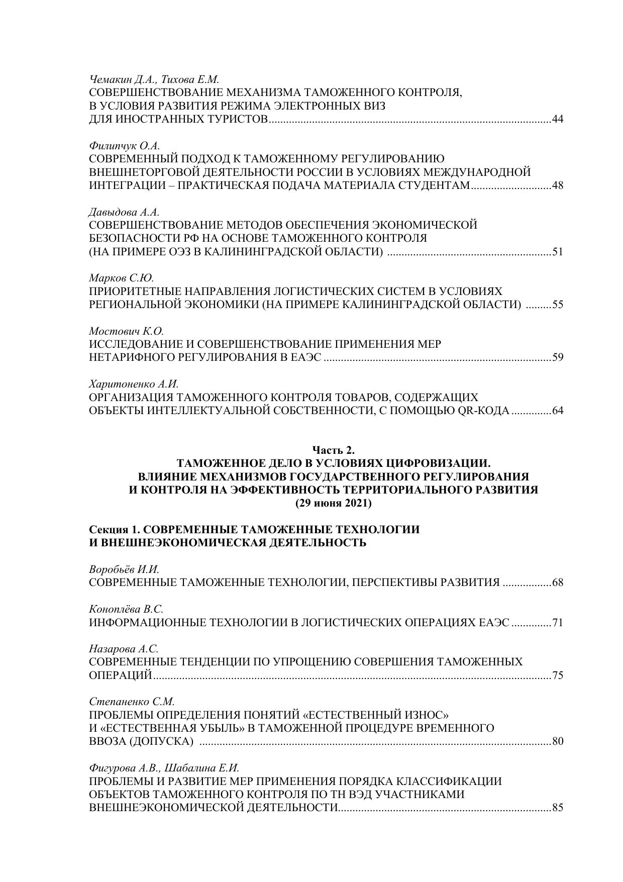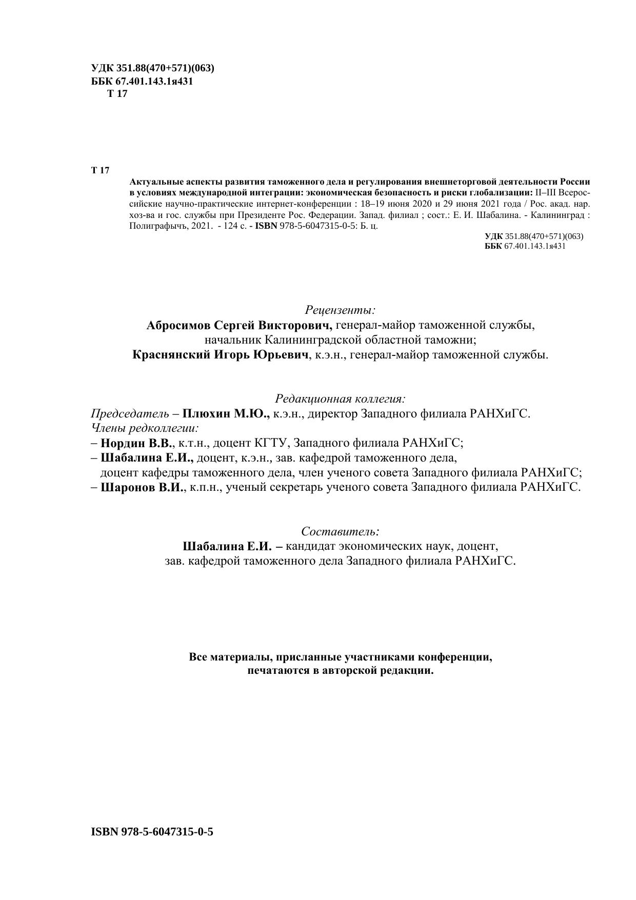 Актуальные аспекты развития таможенного дела и регулирования внешнеторговой деятельности России в условиях международной интеграции: экономическая безопасность и риски глобализации: II–III Всероссийские научно-практические интернет конференции : 18–19 июня 2020 и 29 июня 2021 года