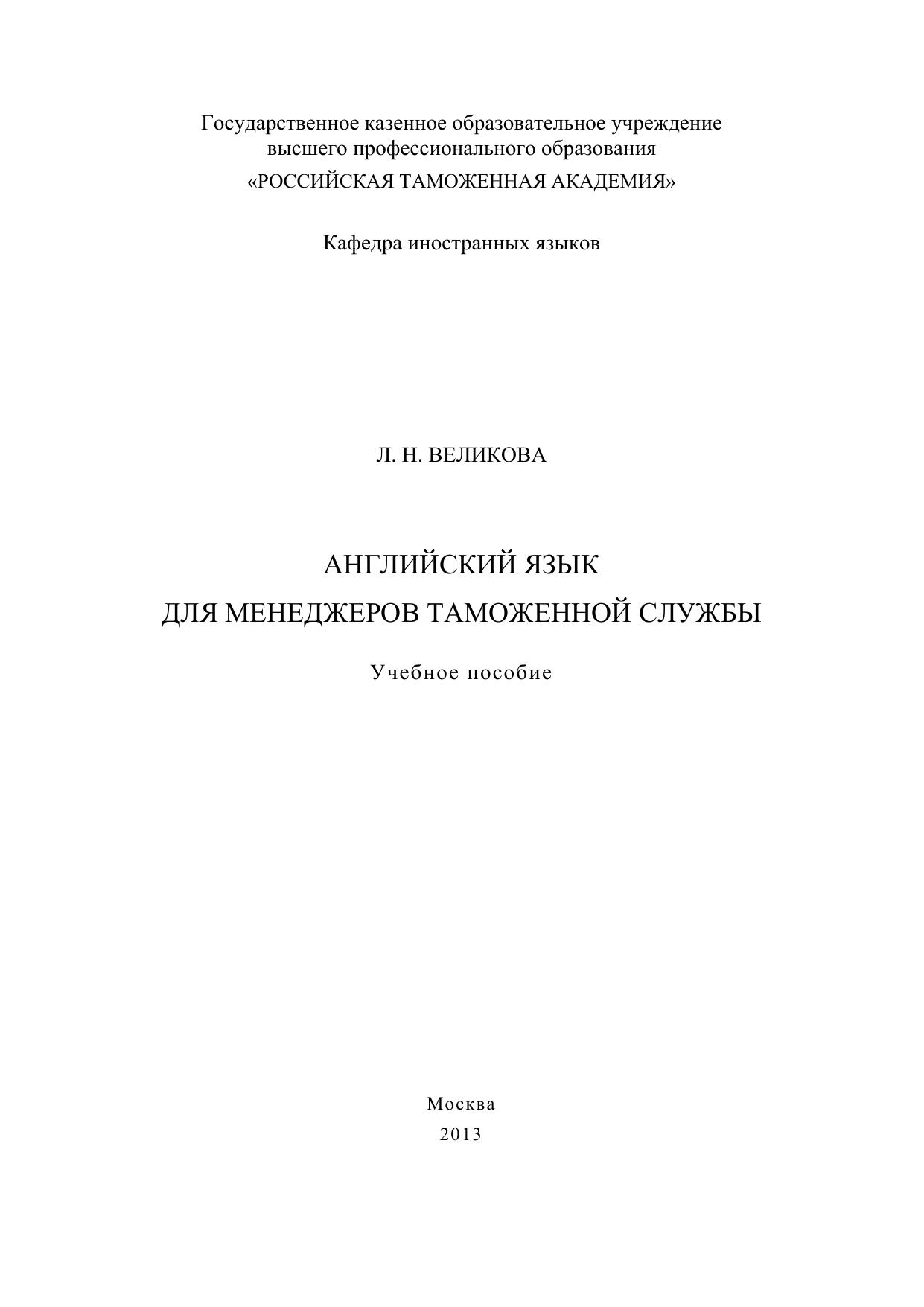 Английский язык для менеджеров таможенной службы: учебное пособие