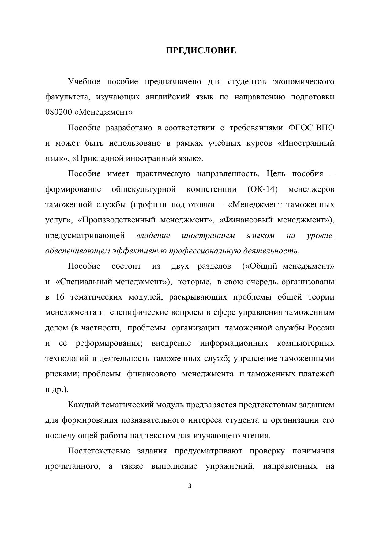 также предлагается дополнительный текстовый материал для самостоятельной работы студентов. Предназначено для студентов экономического факультета, изучающих английский язык по направлению подготовки 080200 «Менеджмент».