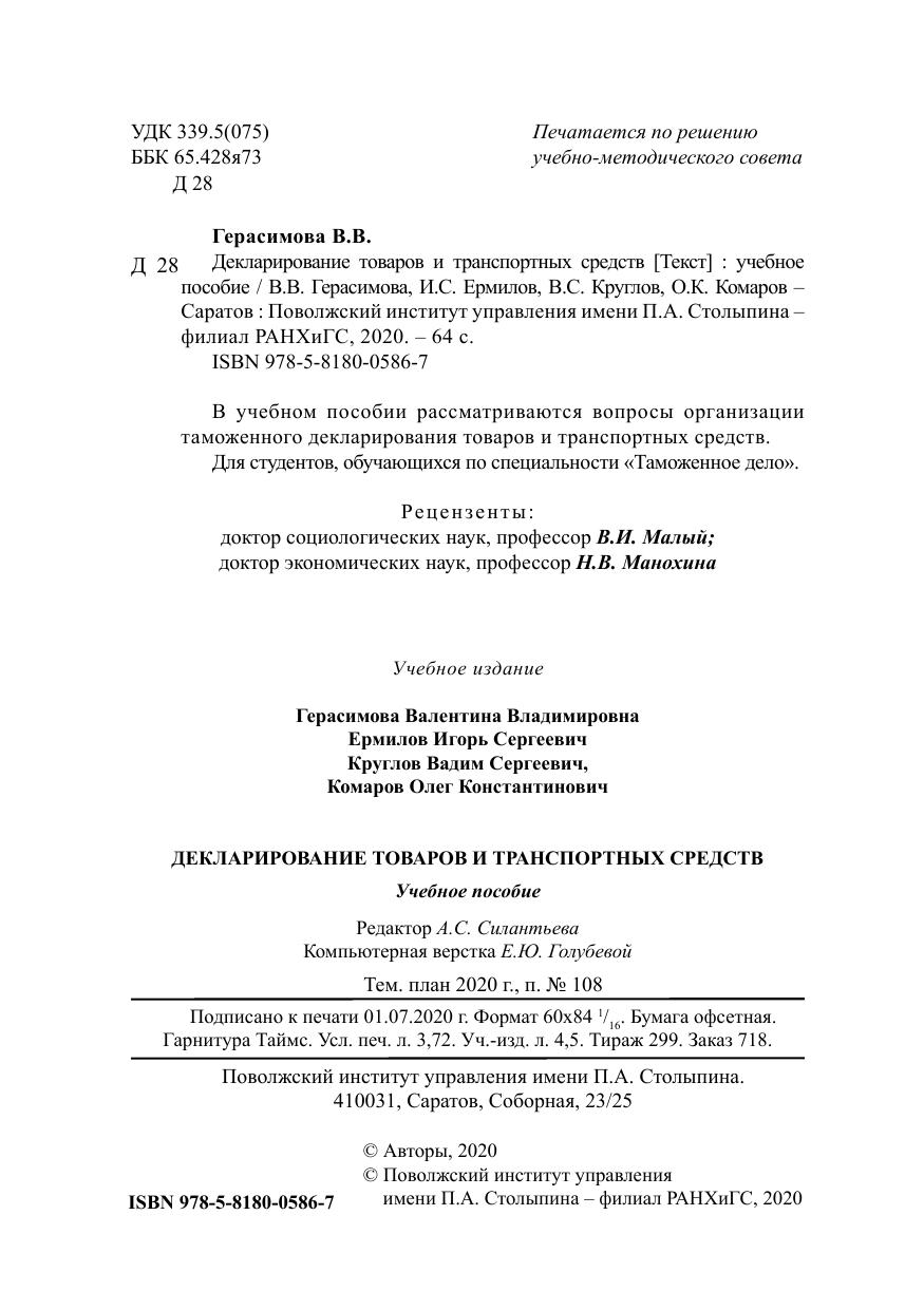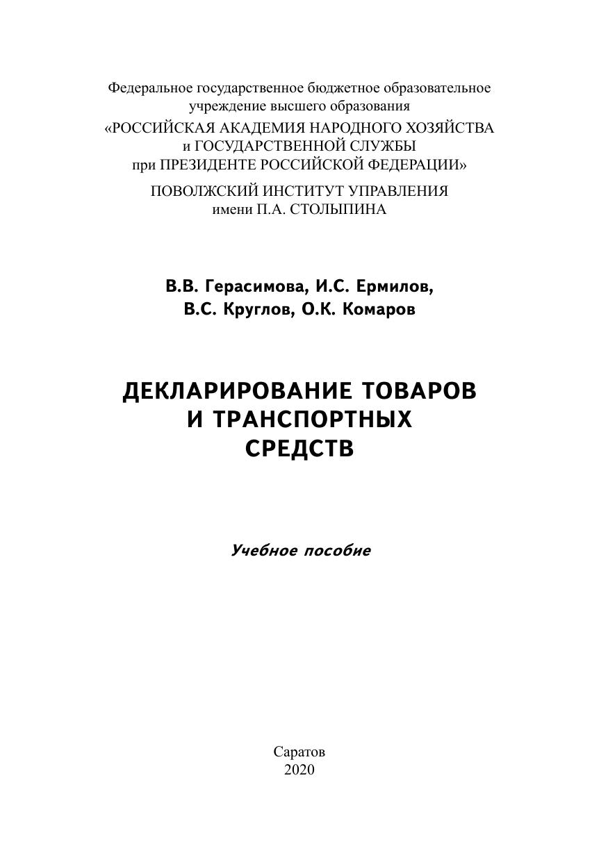В учебном пособии рассматриваются вопросы организации таможенного декларирования товаров и транспортных средств. Для студентов, обучающихся по специальности «Таможенное дело».