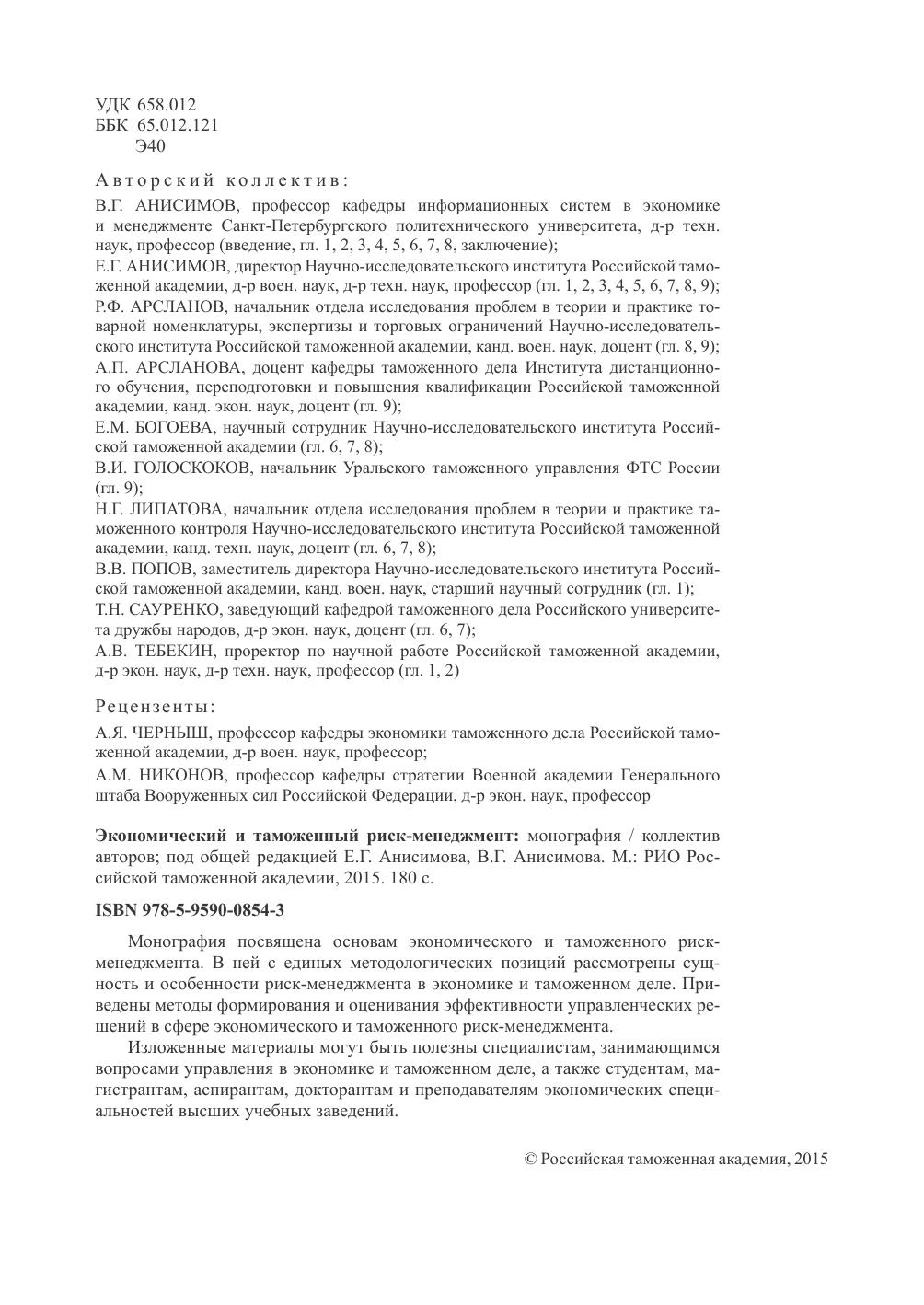Монография посвящена основам экономического и таможенного риск-менеджмента. В ней с единых методологических позиций рассмотрены сущность и особенности риск-менеджмента в экономике и таможенном деле. Приведены методы формирования и оценивания эффективности управленческих решений в сфере экономического и таможенного риск-менеджмента. Изложенные материалы могут быть полезны специалистам, занимающимся вопросами управления в экономике и таможенном деле, а также студентам, магистрантам, аспирантам, докторантам и преподавателям экономических специальностей высших учебных заведений.