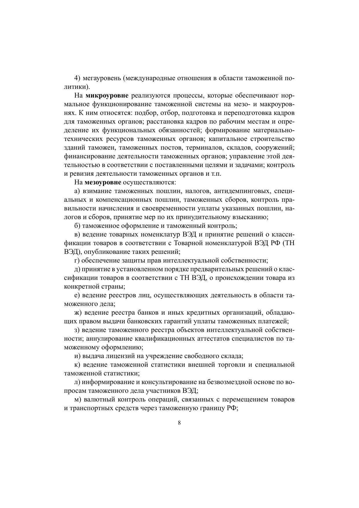 В учебнике рассматриваются: экономика таможенного дела как практика и как наука; ее место и роль в системе экономической безопасности государства; экономические основы создания, размещения и специализации таможенных органов; кадровое, тыловое, финансовое и информационно-техническое обеспечение деятельности таможенных органов; экономическое взаимодействие Российской Федерации в интеграционных процессах и международное сотрудничество таможенных органов; планирование и использование материальных ресурсов таможенными органами; таможенно-тарифное регулирование внешнеторговой деятельности в системе экономики таможенного дела; показатели оценки экономической деятельности таможенных органов; перспективы использования процессного подхода в управлении экономической деятельностью таможенных органов. Предназначен для студентов, обучающих ся по специальности «Таможенное дело», а также может быть использован в качестве источника дополнительной литературы студентами, обучающимися по направлению подготовки «Менеджмент».