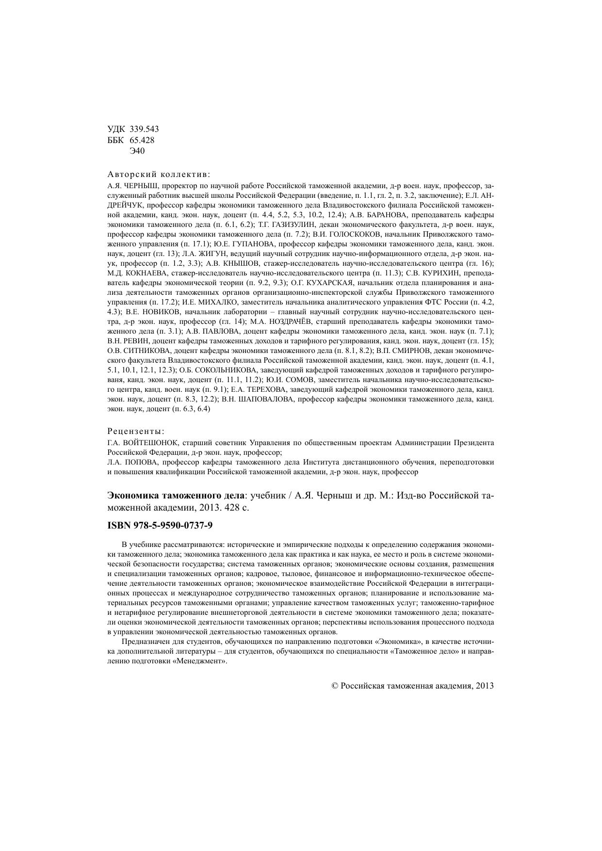 Издательство: РТА (Российская таможенная академия)