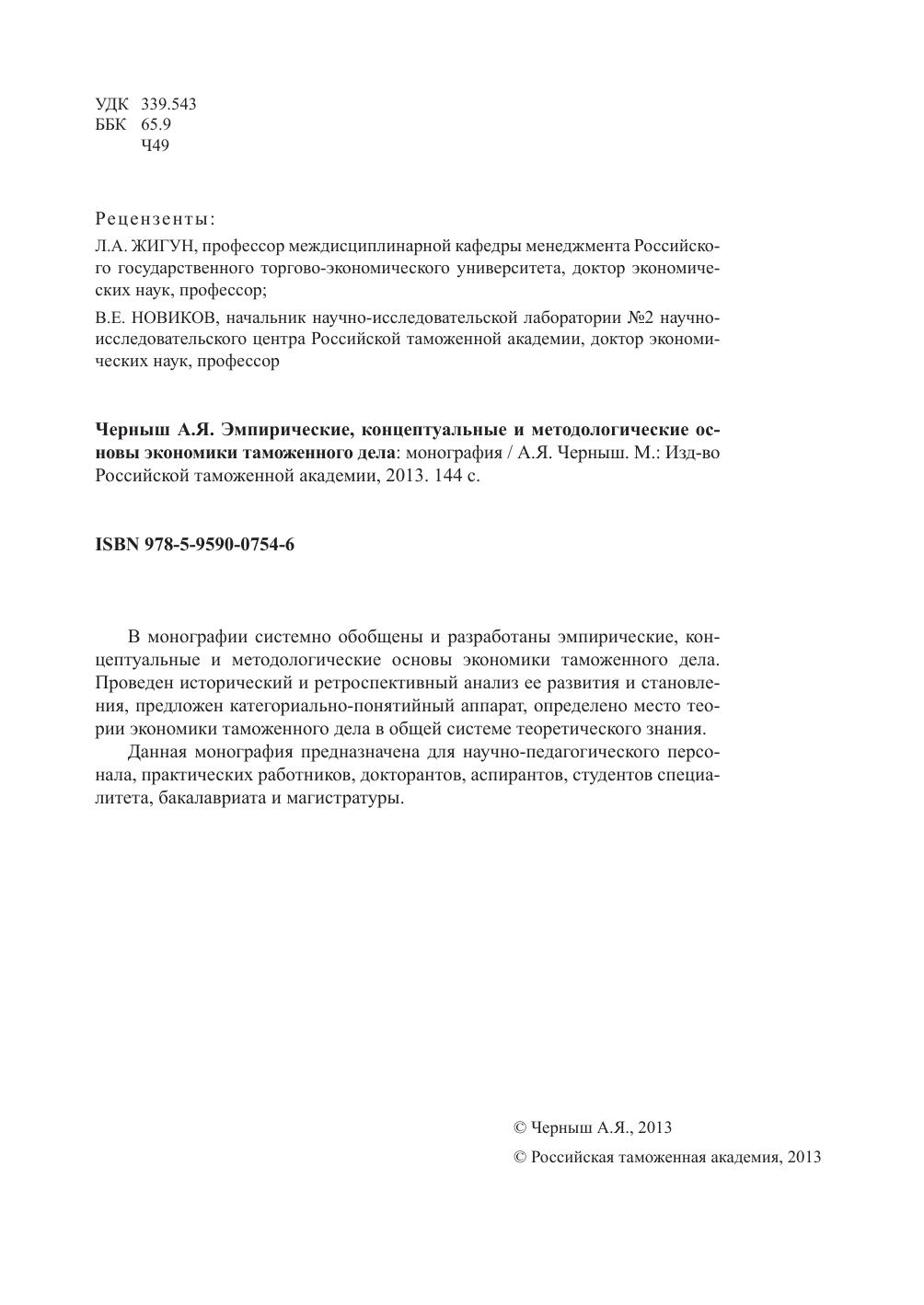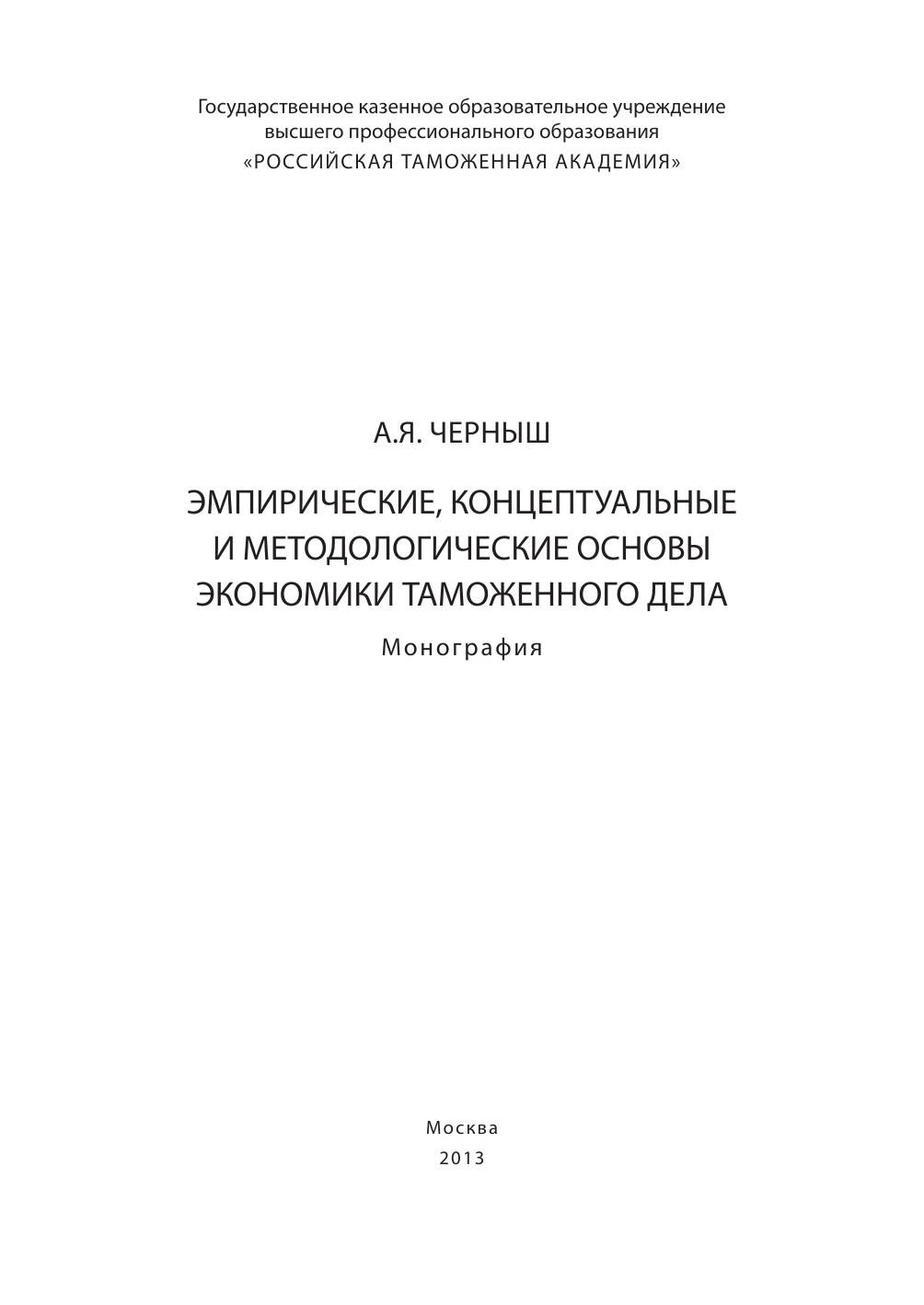 Эмпирические, концептуальные и методологические основы экономики таможенного дела: монография