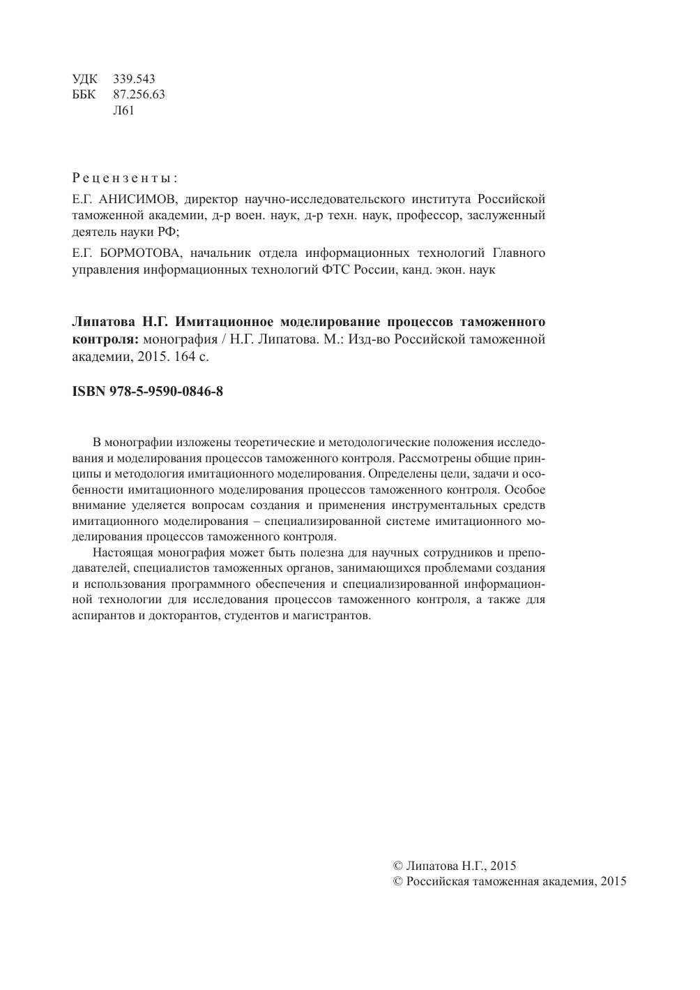 В монографии изложены теоретические и методологические положения исследования и моделирования процессов таможенного контроля. Рассмотрены общие принципы и методология имитационного моделирования. Определены цели, задачи и особенности имитационного моделирования процессов таможенного контроля. Особое внимание уделяется вопросам создания и применения инструментальных средств имитационного моделирования – специализированной системе имитационного моделирования процессов таможенного контроля. Настоящая монография может быть полезна для научных сотрудников и преподавателей, специалистов таможенных органов, занимающихся проблемами создания и использования программного обеспечения и специализированной информационной технологии для исследования процессов таможенного контроля, а также для аспирантов и докторантов, студентов и магистрантов.