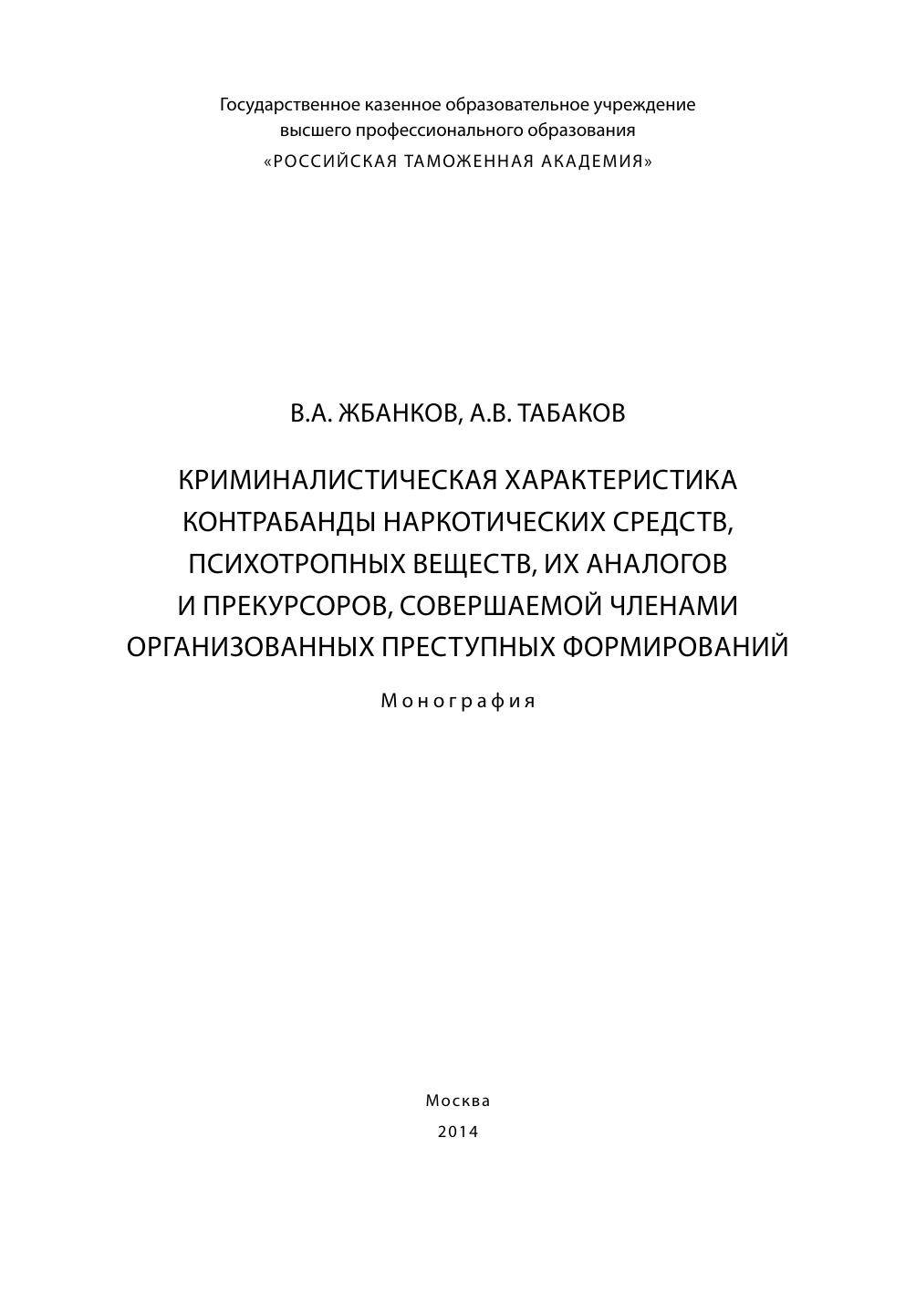 Криминалистическая характеристика контрабанды наркотических средств, психотропных веществ, их аналогов и прекурсоров, совершаемой членами организованных преступных формирований: монография