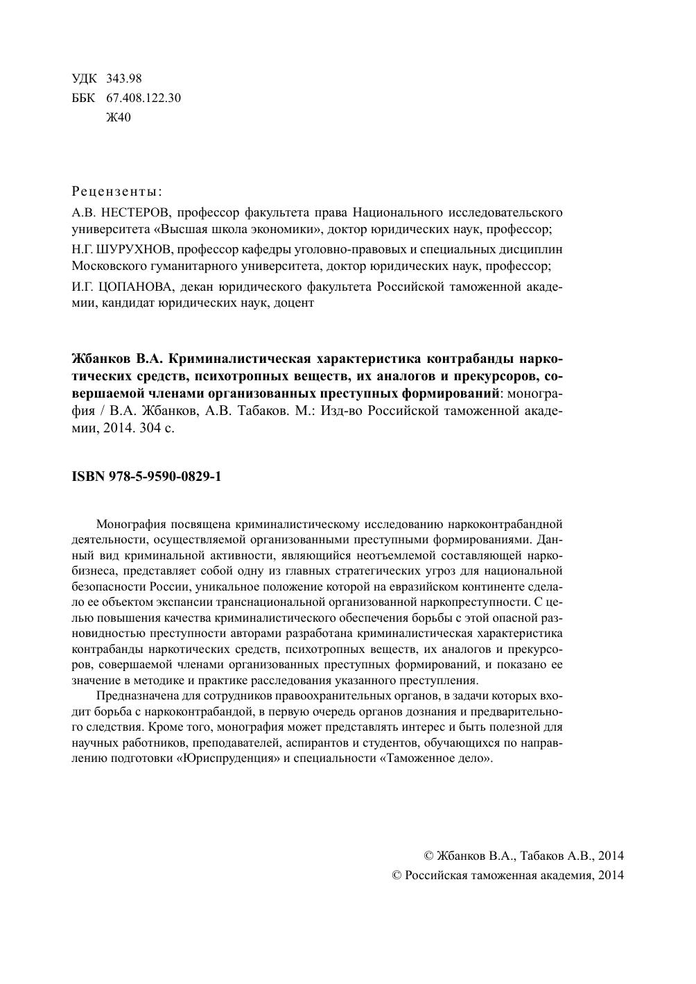 Монография посвящена криминалистическому исследованию наркоконтрабандной деятельности, осуществляемой организованными преступными формированиями. Данный вид криминальной активности, являющийся неотъемлемой составляющей наркобизнеса, представляет собой одну из главных стратегических угроз для национальной безопасности России, уникальное положение которой на евразийском континенте сделало ее объектом экспансии транснациональной организованной наркопреступности. С целью повышения качества криминалистического обеспечения борьбы с этой опасной разновидностью преступности авторами разработана криминалистическая характеристика контрабанды наркотических средств, психотропных веществ, их аналогов и прекурсоров, совершаемой членами организованных преступных формирований, и показано ее значение в методике и практике расследования указанного преступления. Предназначена для сотрудников правоохранительных органов, в задачи которых входит борьба с наркоконтрабандой, в первую очередь органов дознания и предварительного следствия. Кроме того, монография может представлять интерес и быть полезной для научных работников, преподавателей, аспирантов и студентов, обучающихся по направлению подготовки «Юриспруденция» и специальности «Таможенное дело».