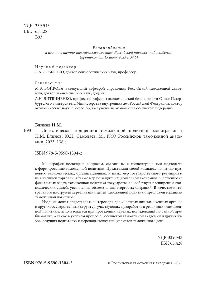 Монография посвящена вопросам, связанным с концептуальными подходами к формированию таможенной политики. Представляя собой комплекс политико-правовых, экономических, организационных и иных мер государственного регулирования внешней торговли, а также мер по защите национальной экономики и решению ее фискальных задач, таможенная политика государства способствует расширению экономических связей, увеличению объема внешнеторговых операций. В качестве интегрального инструмента реализации целей таможенной политики предложен механизм таможенной логистики.