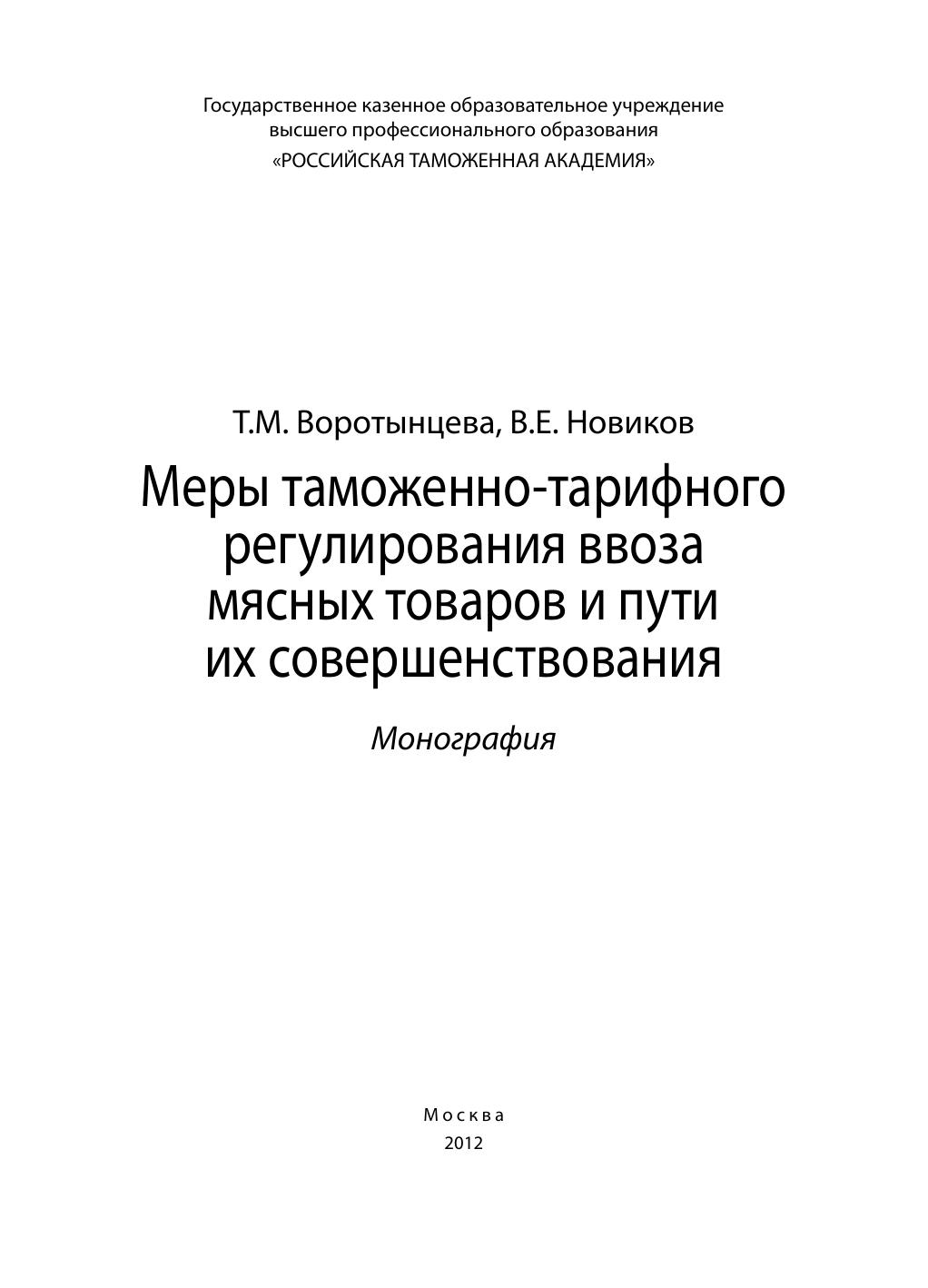 Меры таможенно-тарифного регулирования ввоза мясных товаров и пути их совершенствования: монография