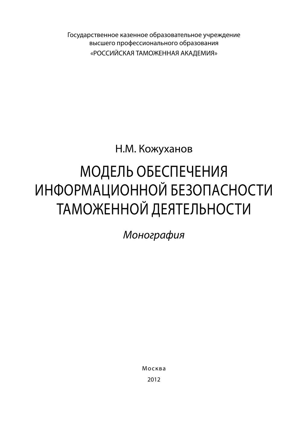 Модель обеспечения информационной безопасности таможенной деятельности: монография