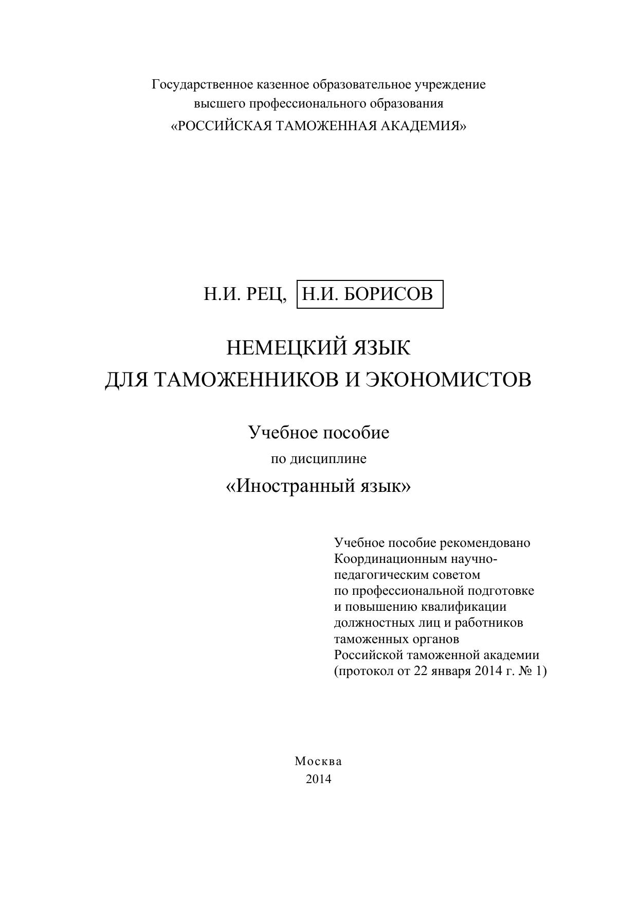 Немецкий язык для таможенников и экономистов: учебное пособие по дисциплине «Иностранный язык»