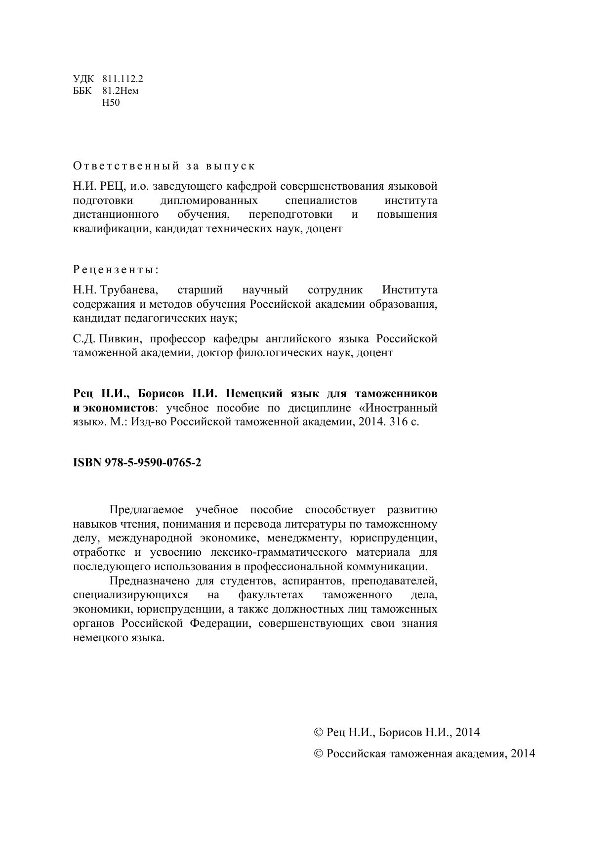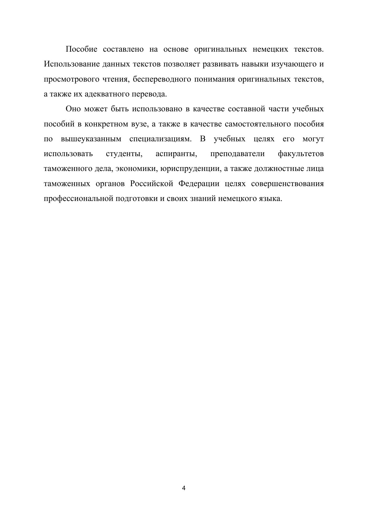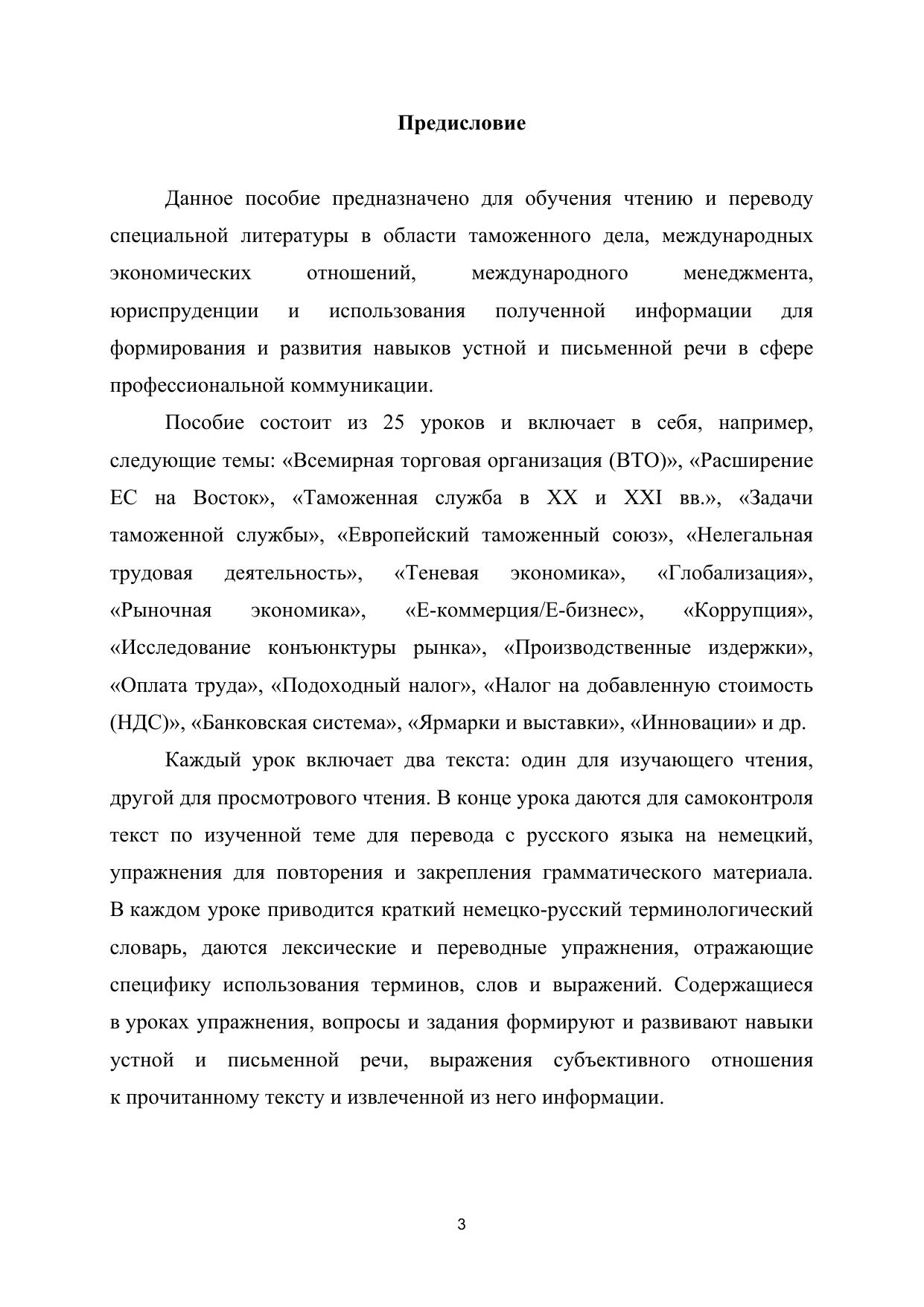 Предлагаемое учебное пособие способствует развитию навыков чтения, понимания и перевода литературы по таможенному делу, международной экономике, менеджменту, юриспруденции, отработке и усвоению лексико-грамматического материала для последующего использования в профессиональной коммуникации. Предназначено для студентов, аспирантов, преподавателей, специализирующихся на факультетах таможенного дела, экономики, юриспруденции, а также должностных лиц таможенных органов Российской Федерации, совершенствующих свои знания немецкого языка.