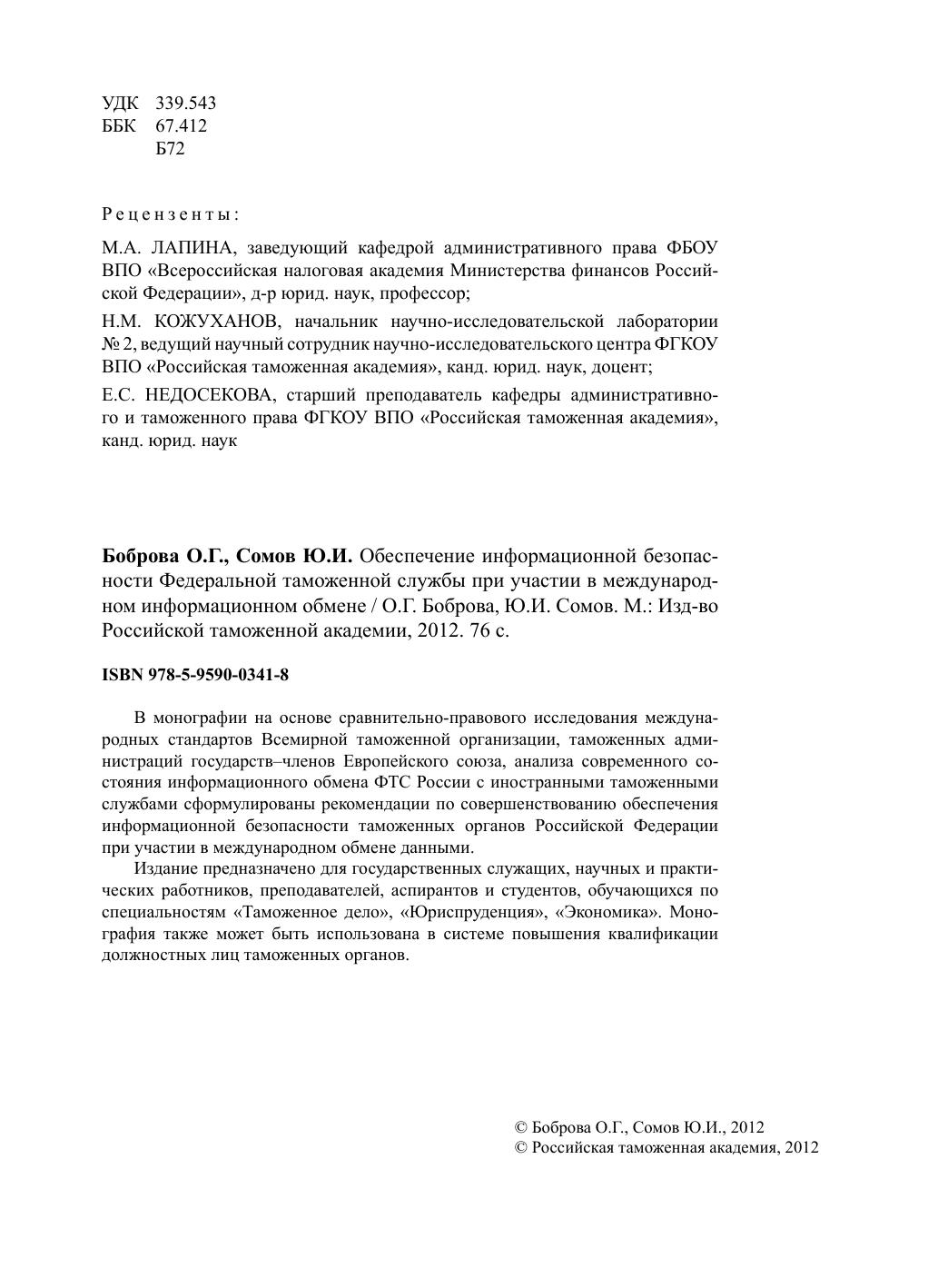 В монографии на основе сравнительно-правового исследования международных стандартов Всемирной таможенной организации, таможенных администраций государств–членов Европейского союза, анализа современного состояния информационного обмена ФТС России с иностранными таможенными службами сформулированы рекомендации по совершенствованию обеспечения информационной безопасности таможенных органов Российской Федерации при участии в международном обмене данными. Издание предназначено для государственных служащих, научных и практических работников, преподавателей, аспирантов и студентов, обучающихся по специальностям «Таможенное дело», «Юриспруденция», «Экономика». Монография также может быть использована в системе повышения квалификации должностных лиц таможенных органов