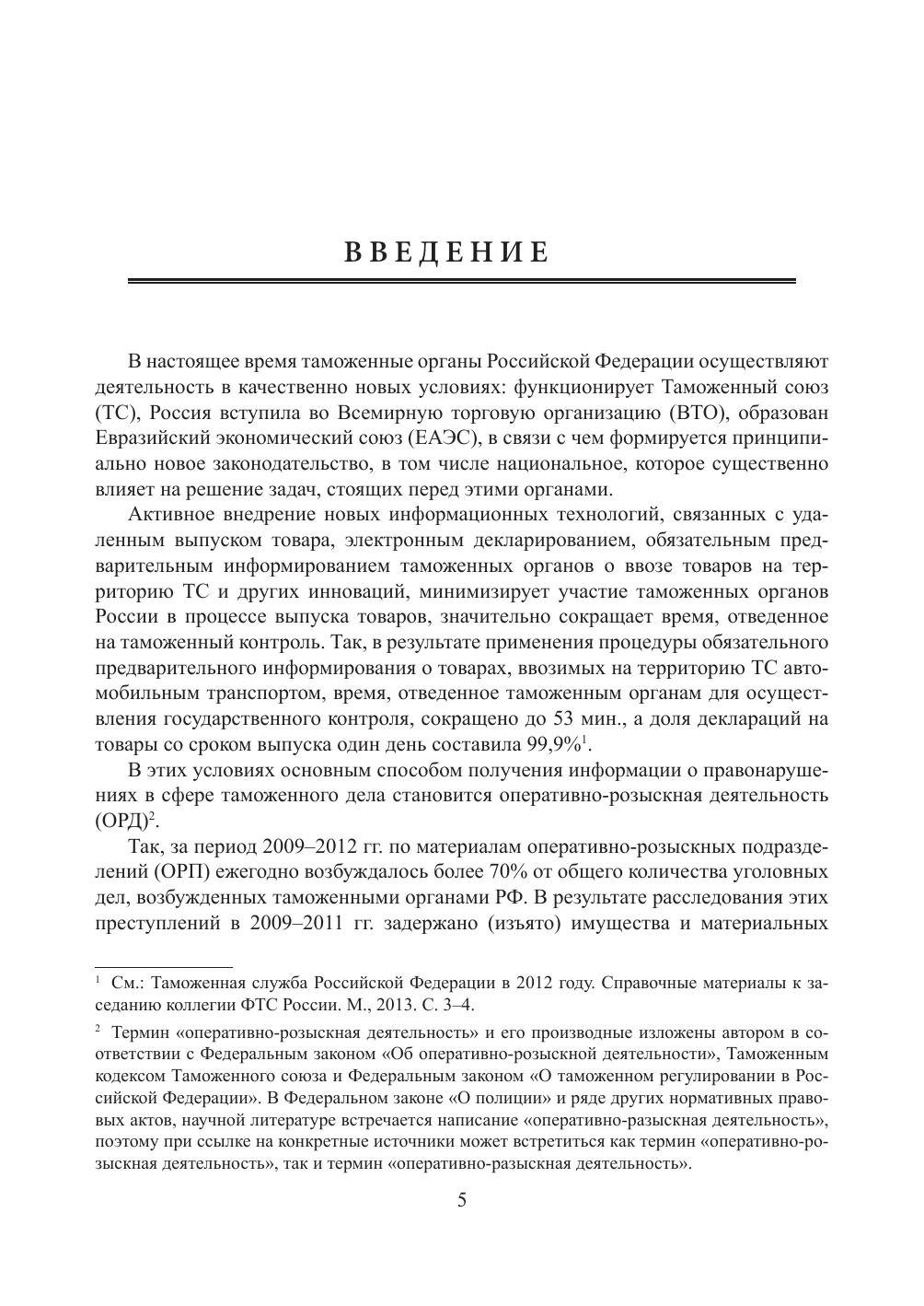 Оперативно-розыскная деятельность таможенных органов Российской Федерации: теоретические, правовые и организационные аспекты