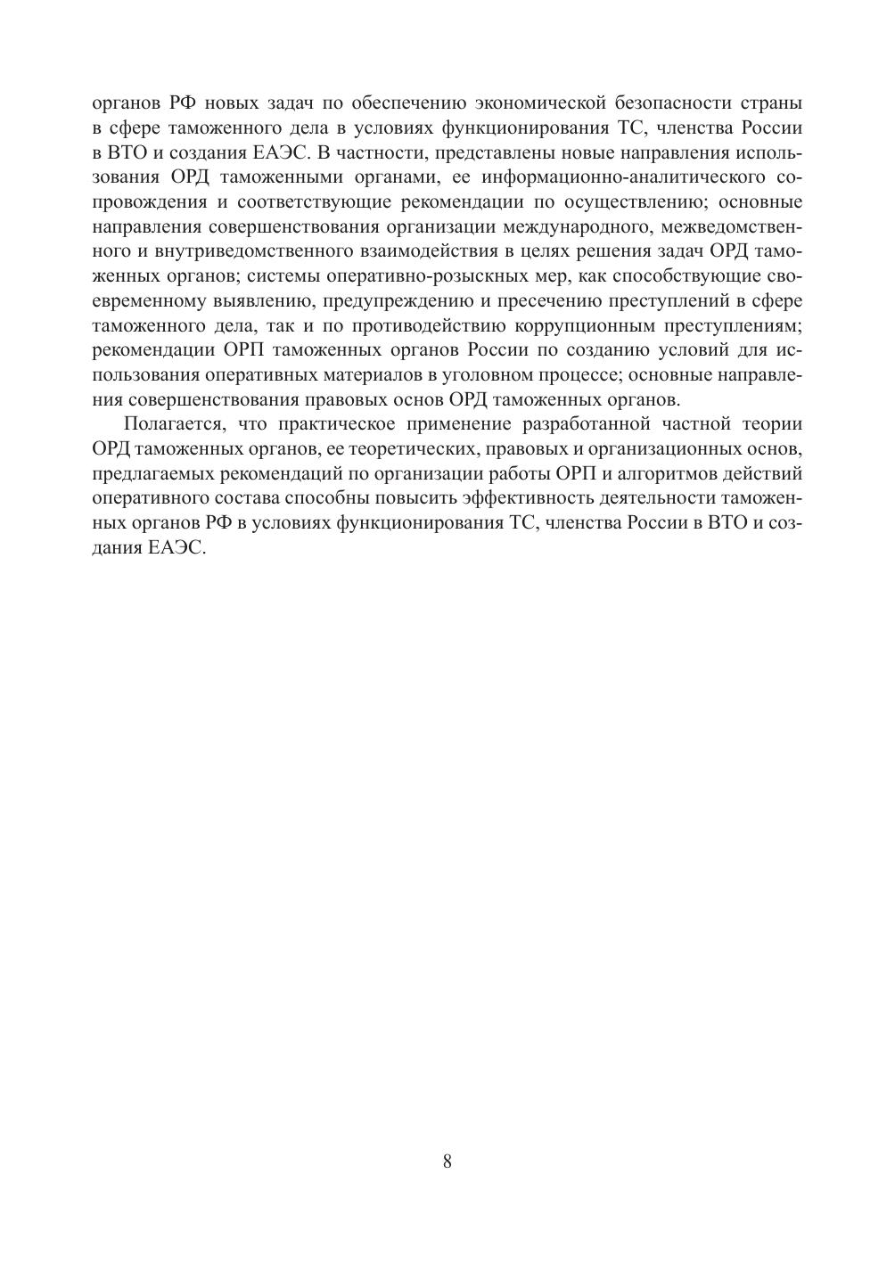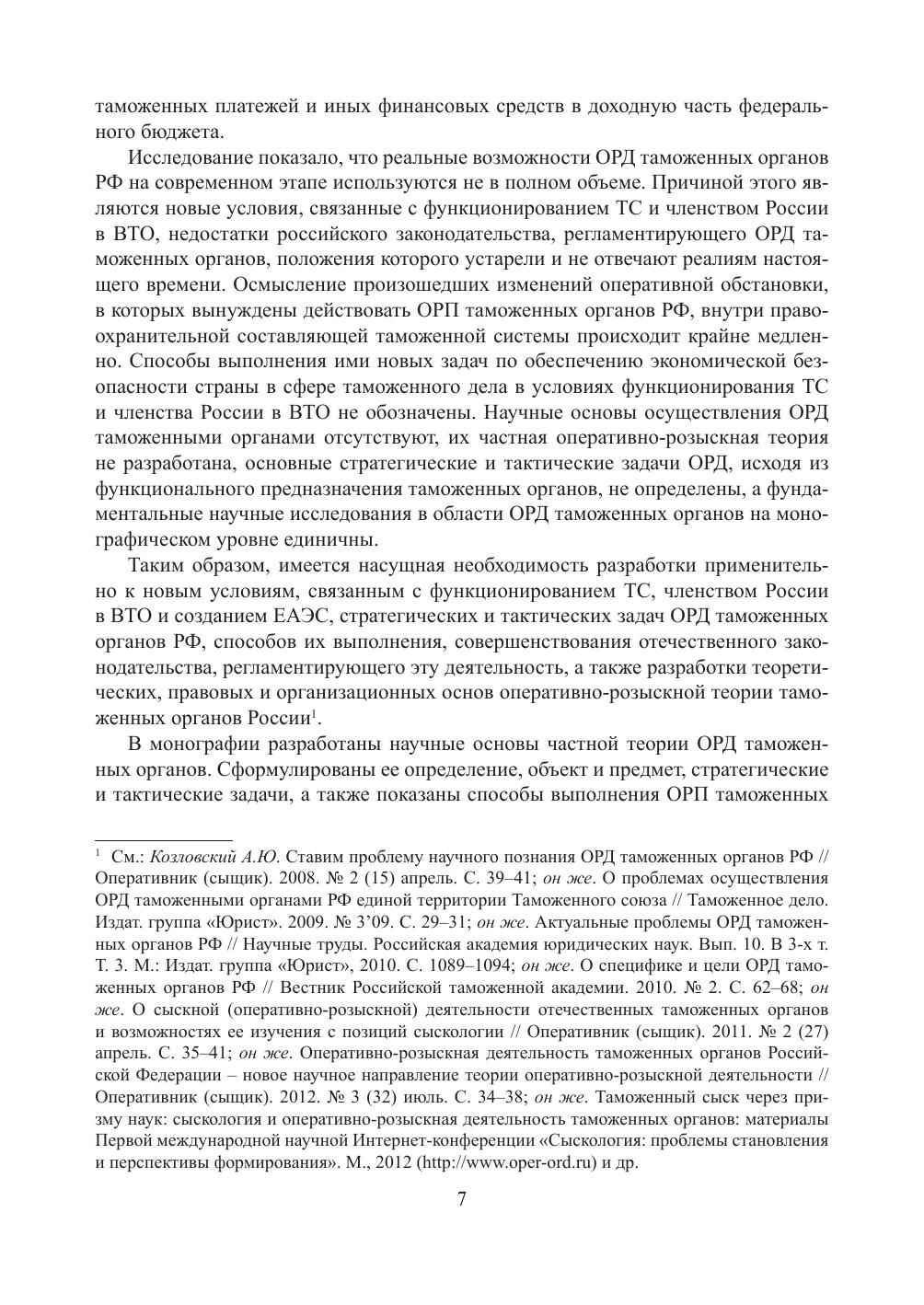 В монографии рассмотрены теоретические, правовые и организационные аспекты оперативно-розыскной деятельности таможенных органов Российской Федерации и актуальные вопросы ее организации в условиях Таможенного союза, членства России во Всемирной торговой организации и создания Евразийского экономического союза. Работа предназначена для преподавателей, научных сотрудников и аспирантов Российской таможенной академии. Результаты исследования могут быть использованы в качестве методических положений при профессиональном обучении руководящего и оперативного состава таможенных органов Российской Федерации, а также студентов по специальностям «Юриспруденция» и «Таможенное дело».